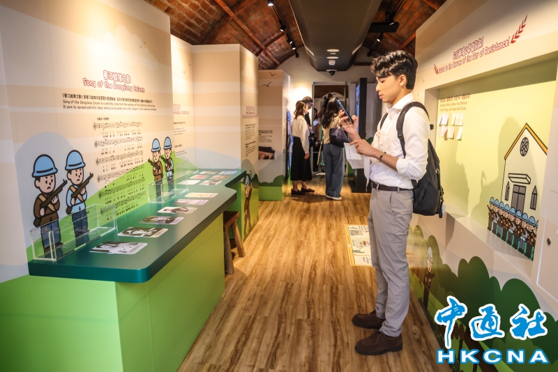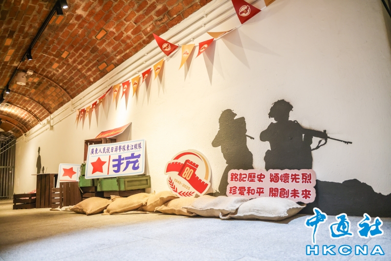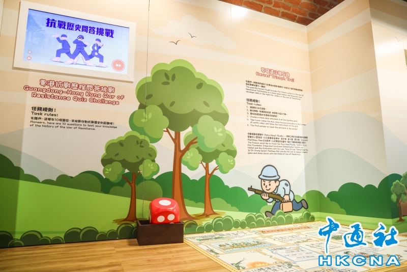 為紀念中國人民抗日戰爭暨世界反法西斯戰爭勝利八十周年,香港抗戰及海防博物館與廣東革命歷史博物館合作,推出“風雨同舟 共建和平一一粵港人民抗戰勝利八十周年展”。展覽由8月29日起至明年7月8日舉行。展覽聚焦面對外敵入侵時,粵港兩地人民在中國共產黨的領導下,血脈相連、團結一心、共同抗敵的歷史。展覽展出約40件/ 套抗戰文物,以及約一百五十幀歷史照片,包括東江縱隊成員曾使用的物品、抗戰先烈及記錄廣州和香港淪陷期間的照片等。圖為互動區。(香港中通社記者 曹文毓攝) 香港中通社圖片