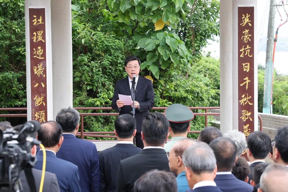 香港特區與行政長官李家超8月30日一早為英烈紀念亭對聯主持揭幕儀式及致辭。圖自李家超facebook 除斬竹灣抗日英烈紀念碑園外,香港還有多個抗戰遺址。適逢今年是中國人民抗日戰爭暨世界反法西斯戰爭勝利80周年,特區政府會在這些地點加設紀念牌匾及史實資訊等,讓市民更全面認識抗戰歷史和抗戰勝利的重大意義,同時銘記歷史、團結奮進,傳承英烈精神,弘揚愛國情懷,為實現中華民族的偉大復興不懈奮鬥。(完) 【編輯:豐悅】