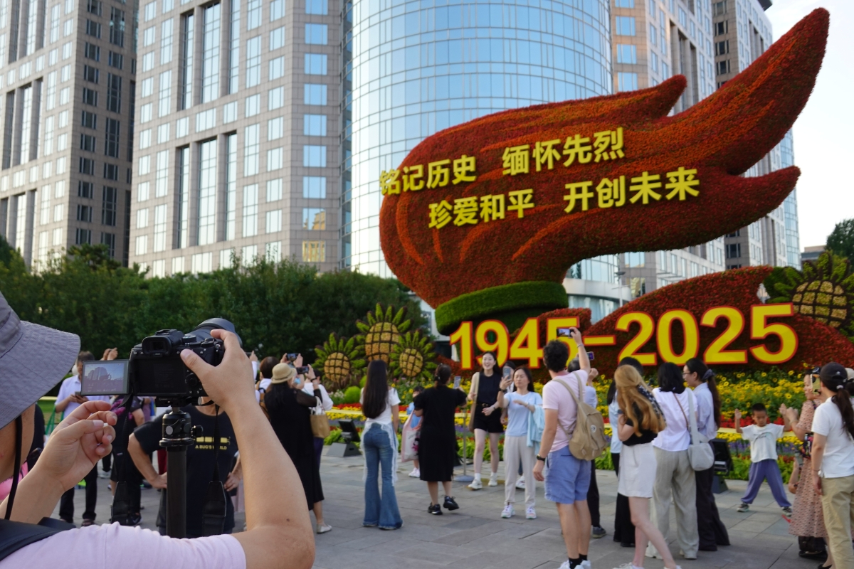 香港新聞網9月2日電 (記者 陳卓儀)紀念中國人民抗日戰爭暨世界反法西斯戰爭勝利80周年主題花壇近日成為北京長安街的熱門打卡點。