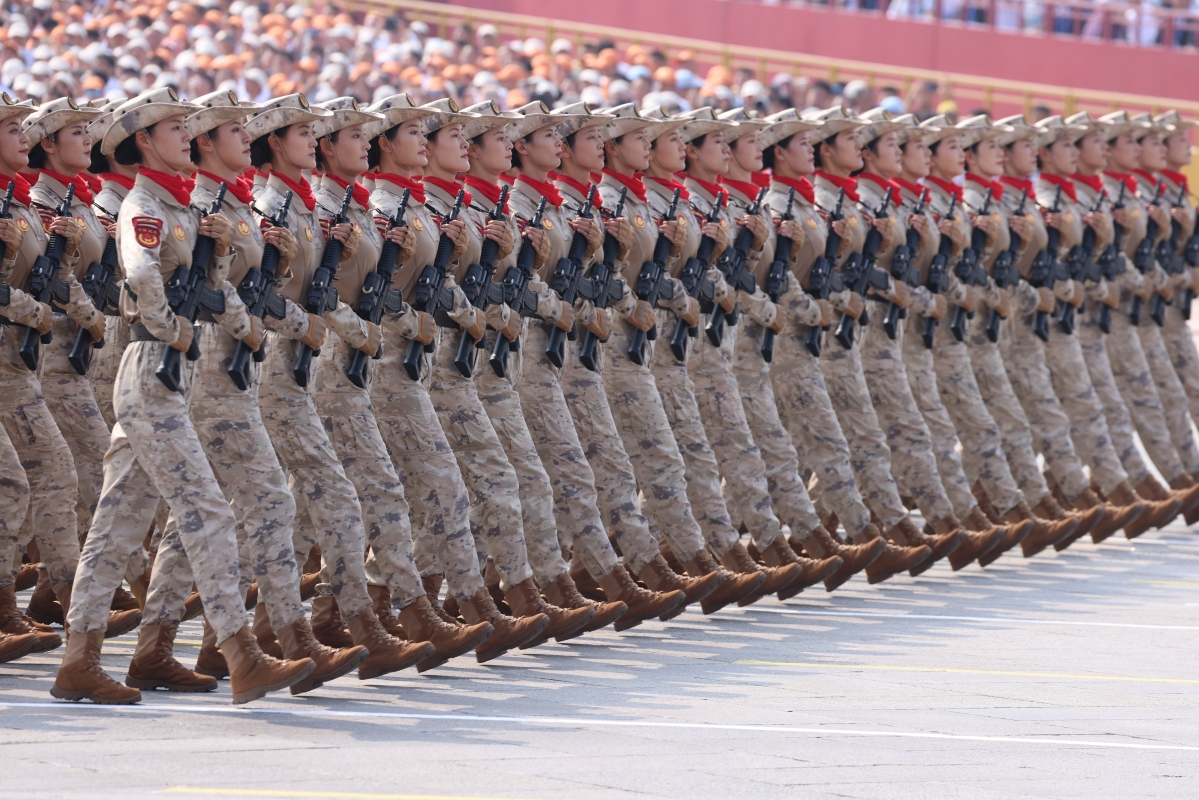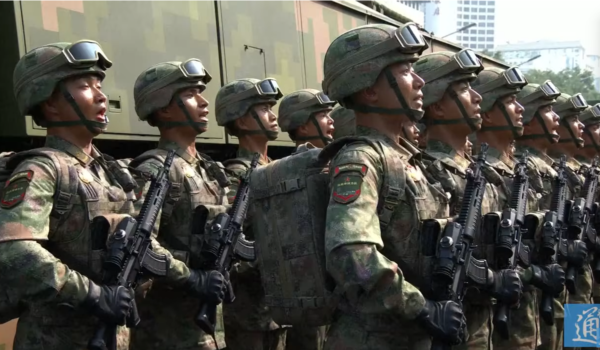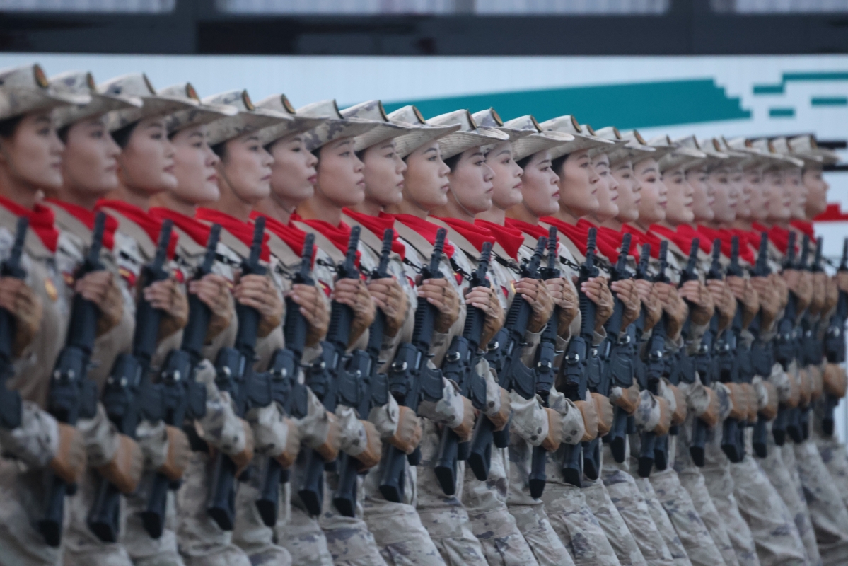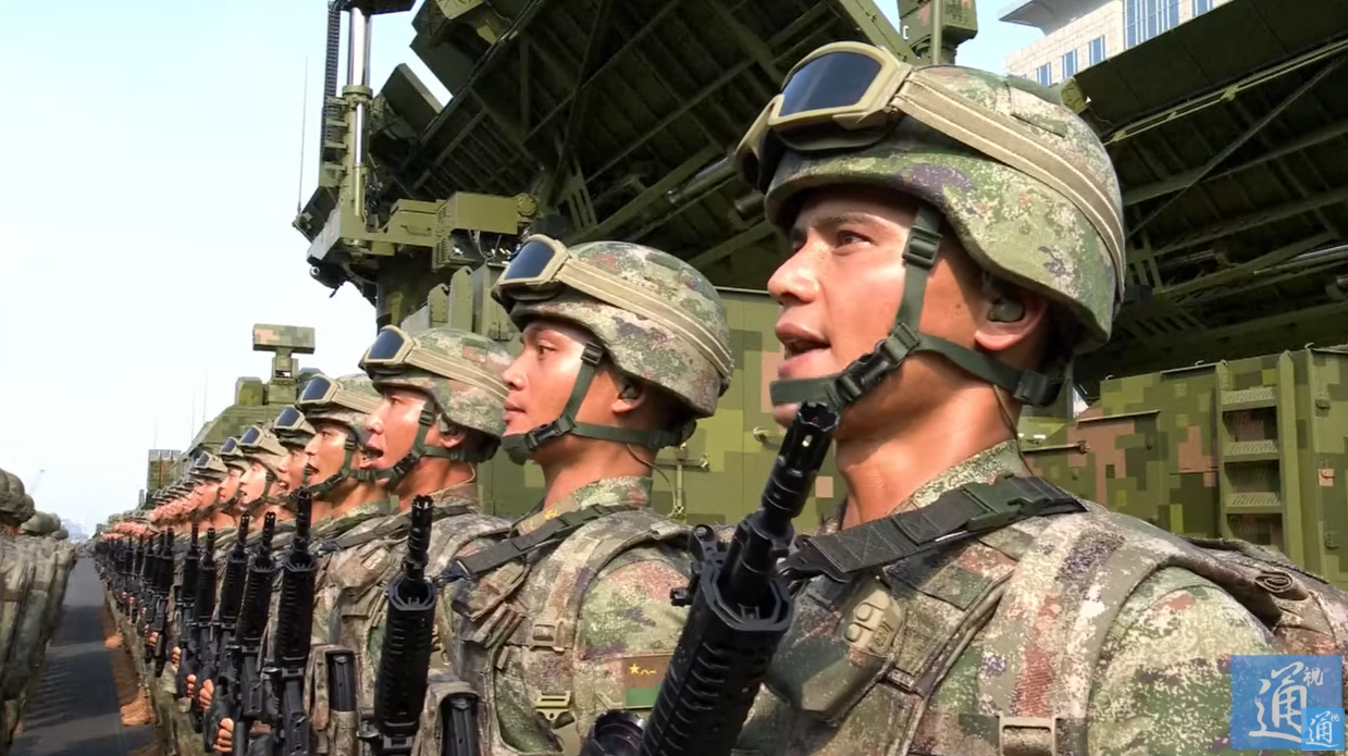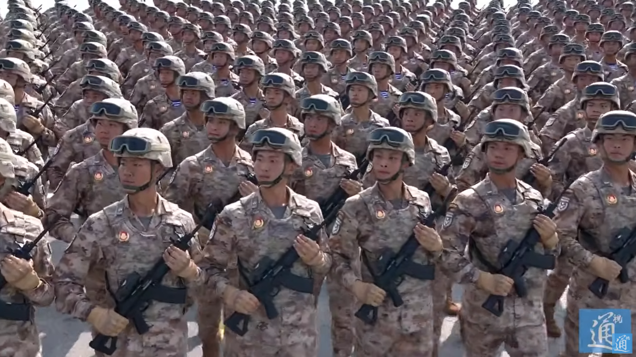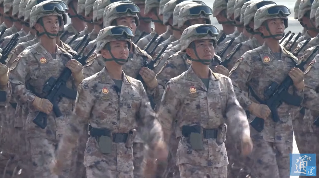 地面突擊方隊。(香港中通社記者 陳卓儀攝) 【北京時間9:53】 海軍方隊、空軍方隊、武警部隊方隊、民兵方隊、軍事航天部隊方隊、網絡空間部隊方隊、信息支援部隊方隊等接受檢閱。