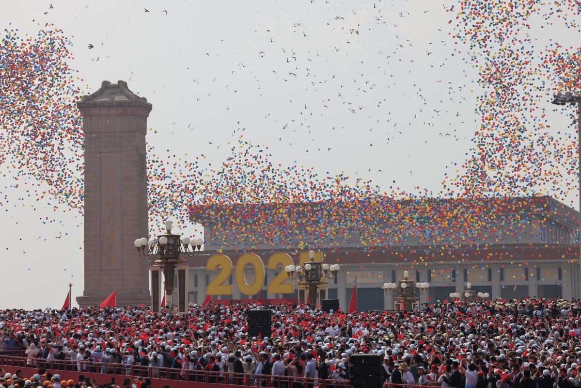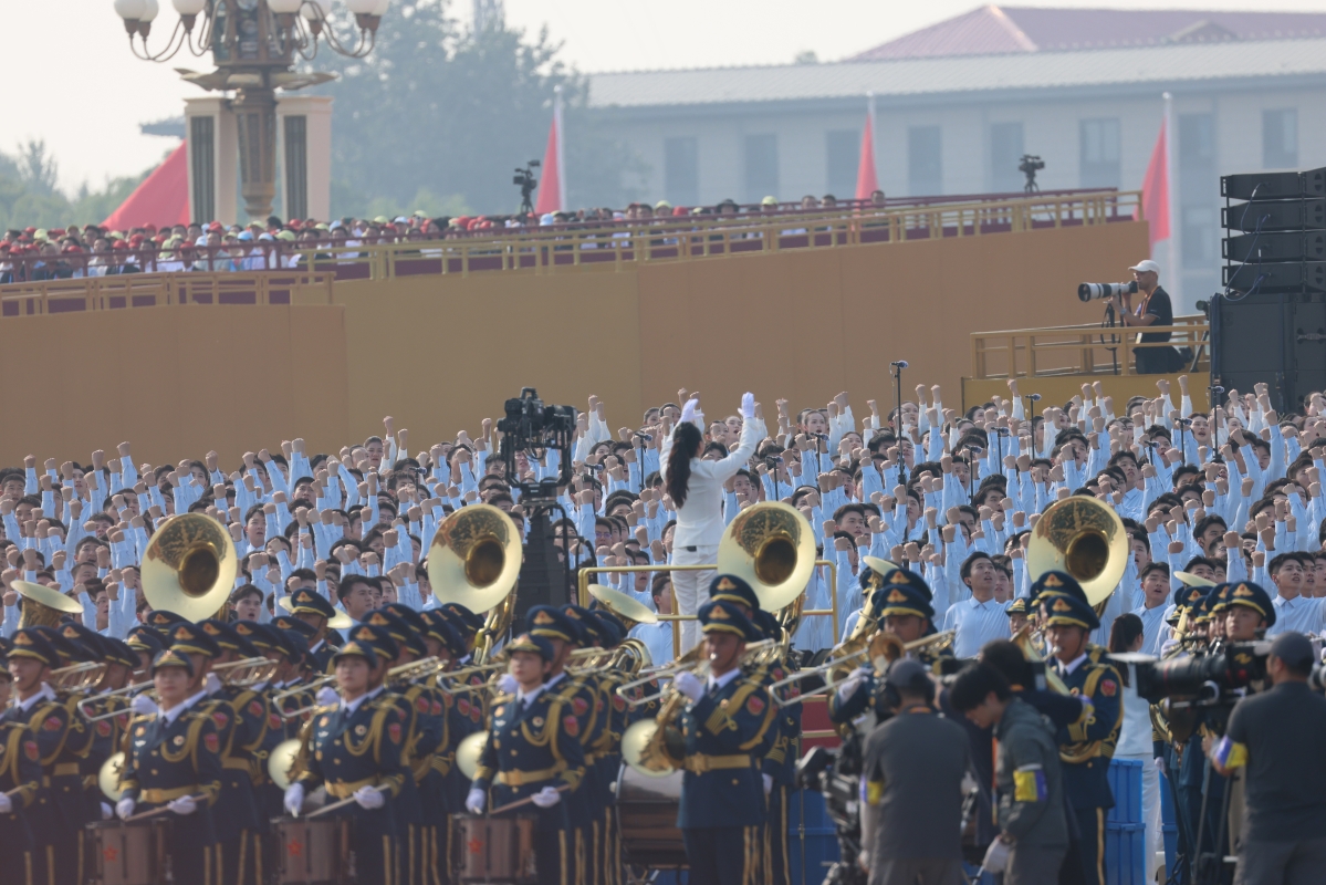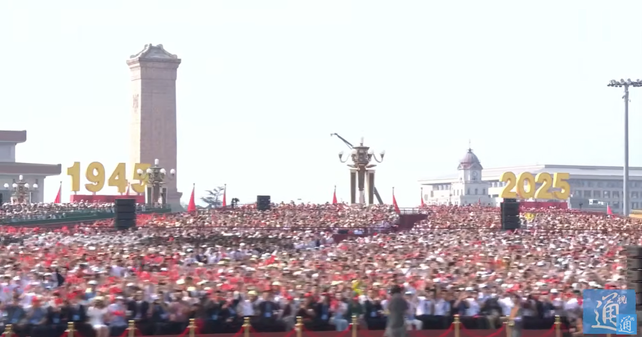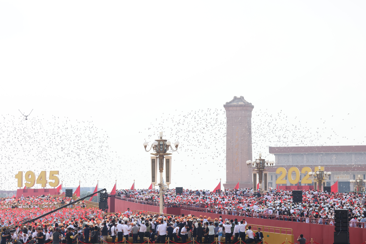 (九三閱兵)中通社記者現場直擊:共同見證這一盛大時刻香港新聞網9月3日電 今天(9月3日)是中國人民抗日戰爭暨世界反法西斯戰爭勝利80周年紀念日。上午9時,北京天安門廣場舉行紀念大會。中共中央總書記、國家主席、中央軍委主席習近平將發表重要講話并檢閱部隊。香港新聞網將同時開通視頻直播以及解說文字的持續更新,與大家共同見證這一盛大時刻。 根據流程,閱兵活動按閱兵式、分列式進行,時長約70分鐘。其中,閱兵式環節,受閱部隊在長安街列陣,接受中共中央總書記、國家主席、中央軍委主席習近平的檢閱;分列式環節,按空中護旗梯隊、徒步方隊、戰旗方隊、裝備方隊、空中梯隊順序,依次通過天安門廣場。 【北京時間10:27】 山河永念,英雄不朽,浩氣長存!隨著8萬羽和平鴿和8萬隻彩色氣球飛向天空,紀念大會在《歌唱祖國》的歌聲中圓滿結束。