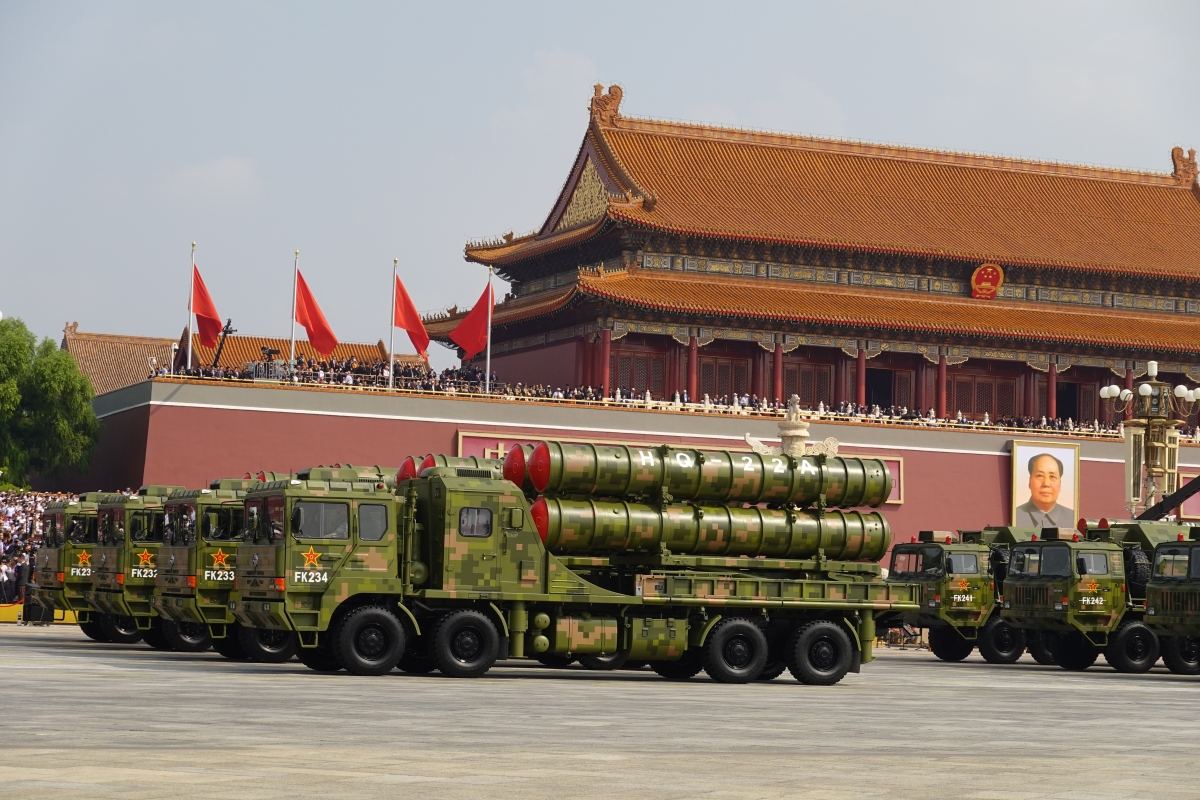HQ-22A地导武器系统也是本次阅兵中首次展示的一型新型防空导弹武器系统。(香港中通社記者 陳卓儀攝) 核導彈第二方隊接受檢閱。(視頻來源:香港中通社) 【北京時間10:10】 艦載防空武器方隊接受檢閱。4型受閱裝備構成遠近銜接、立體對空防禦體系。