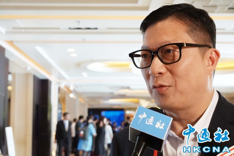 圖為香港保安局局長鄧炳強抵達酒店,接受中通社記者獨家採訪(圖源:香港中通社)