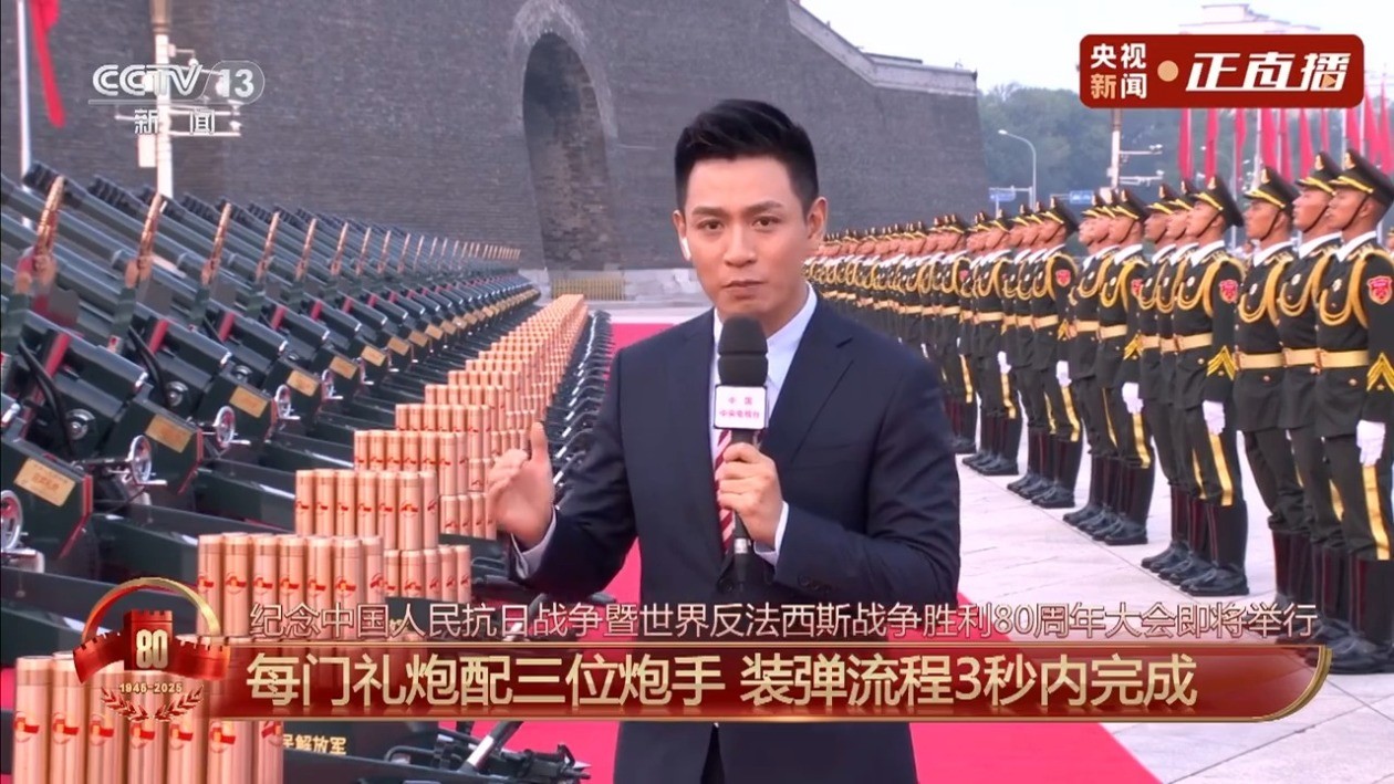 香港新聞網9月3日電 在今天上午舉行的紀念中國人民抗日戰爭暨世界反法西斯戰爭勝利80周年大會上,將鳴放禮炮,致敬抗戰偉大勝利。 56門禮炮今天將鳴放80響 據央視新聞報道,禮炮陣地以正陽門拱形門樓為中心,同時也以北京的中軸線為中線,向東北、西北兩側排開,呈八字形,禮炮射角為30度,視覺效果莊嚴威武。 兩側共56門禮炮,在稍後的儀式中,單側28門禮炮齊發為一響,兩側交替鳴放80響,以紀念中國人民抗日戰爭暨世界反法西斯戰爭勝利80周年。