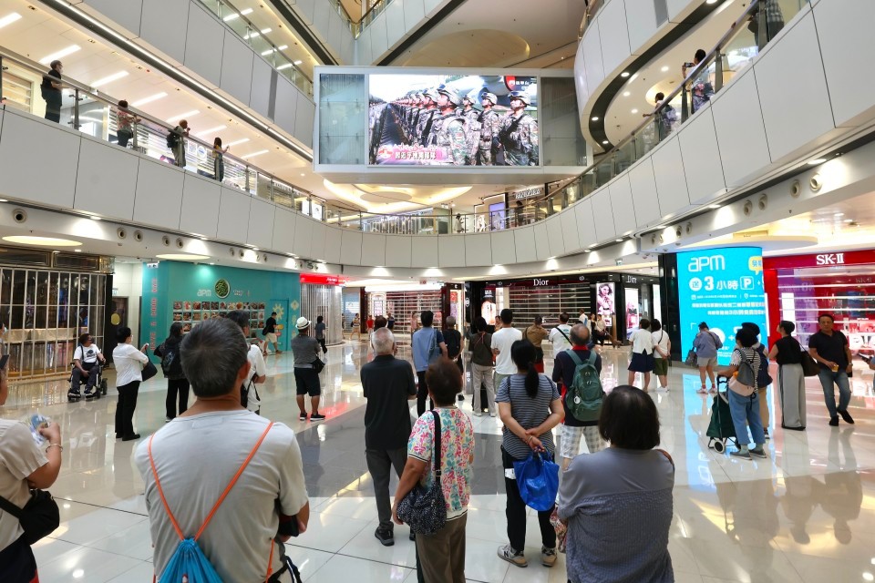 香港市民在商場觀看閱兵(圖源:橙新聞)