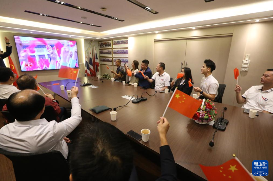 9月3日,在泰國曼谷,華僑華人觀看紀念中國人民抗日戰爭暨世界反法西斯戰爭勝利80周年大會直播。(圖源:新華社)