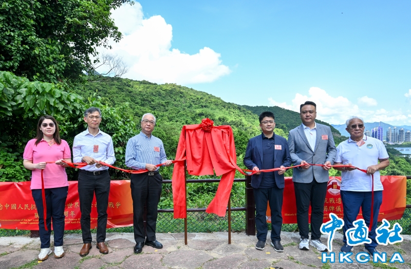 •   9月5日,香港漁農自然護理署於馬鞍山郊野公園西貢企嶺下西沙路舉行香港中共抗戰遺址紀念牌匾揭牌儀式,紀念中國人民抗日戰爭暨世界反法西斯戰爭勝利80周年。圖為(左起)立法會議員林素蔚、漁護署署長黎堅明、環境及生態局局長謝展寰、中聯辦新界工作部副部長王卉、立法會議員李世榮及西貢北約鄉事委員會第一副主席林啤為紀念牌匾揭牌。 香港中通社圖片