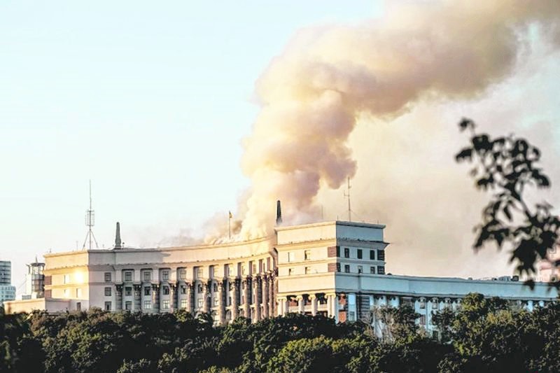 香港新聞網9月8日電 俄羅斯9月6日晚至7日凌晨對烏克蘭發動俄烏爆發戰爭以來最大規模的一次導彈和無人機襲擊。位於烏克蘭基輔市中心的內閣大樓也被擊中,大樓屋頂冒起滾滾濃煙。對於此次烏克蘭首都政府大樓首次遭俄羅斯炮火襲擊,美國總統特朗普隨後表態稱已做好準備對俄羅斯實施第二階段制裁。