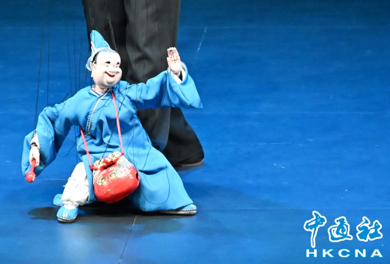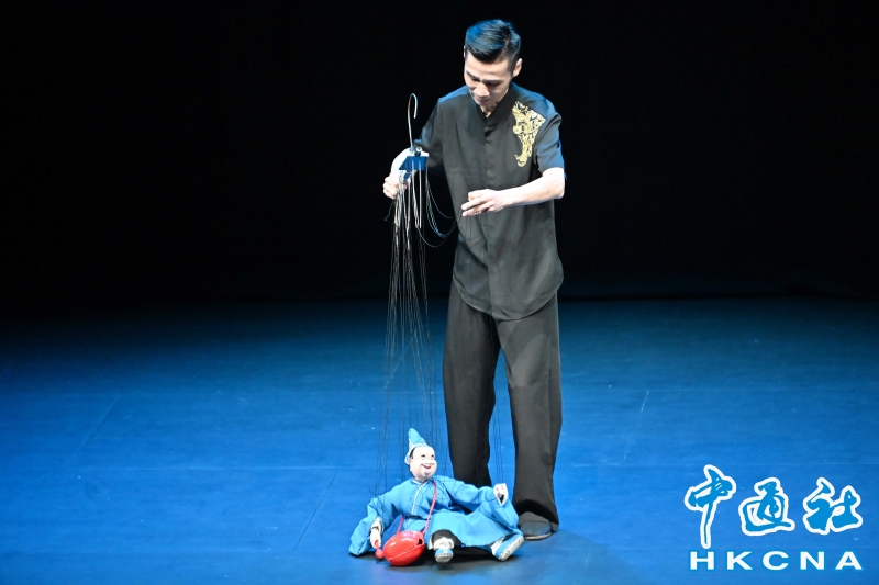 •   9月12日,香港康文署“中華文化節2025”在西灣河文娛中心劇院舉辦“普及中華文化藝術專場”。超過300名中小學師生獲邀免費欣賞由泉州市提線木偶戲傳承保護中心帶來的《古藝新姿木偶戲》演出,感受這項國家級非物質文化遺產的獨特魅力。據介紹,泉州提線木偶戲源於秦漢,傳承至今,保存獨有的劇種音樂“傀儡調”,並發展出一套成熟的操線功夫和獨具特色的偶頭雕刻、木偶造型和製作工藝,2006年被列入首批國家級非物質文化遺產代表性項目名錄,於2012年入選聯合國教科文組織保護非物質文化遺產優秀實踐名冊。圖為《古藝新姿木偶戲》內含七齣經典小戲如《小沙彌下山》展現閩南民俗千年技藝。 (香港中通社記者洪少葵攝) 香港中通社圖片