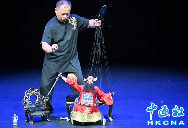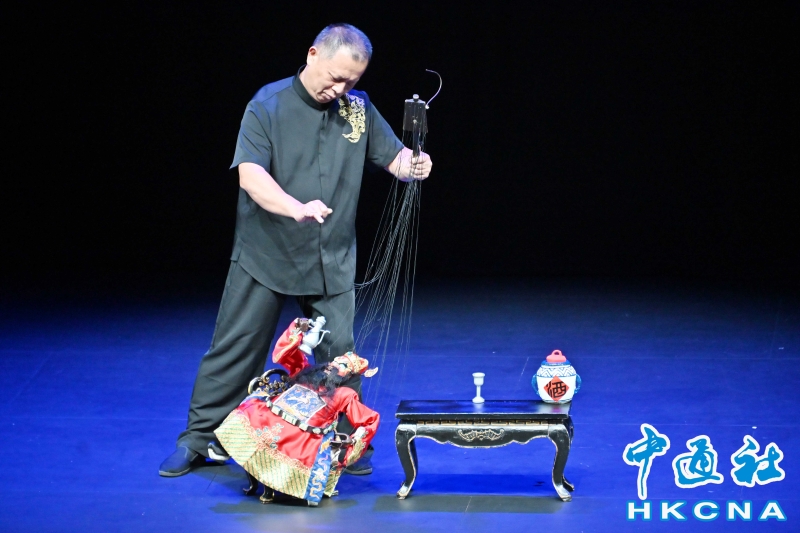 •   9月12日,香港康文署“中華文化節2025”在西灣河文娛中心劇院舉辦“普及中華文化藝術專場”。超過300名中小學師生獲邀免費欣賞由泉州市提線木偶戲傳承保護中心帶來的《古藝新姿木偶戲》演出,感受這項國家級非物質文化遺產的獨特魅力。據介紹,泉州提線木偶戲源於秦漢,傳承至今,保存獨有的劇種音樂“傀儡調”,並發展出一套成熟的操線功夫和獨具特色的偶頭雕刻、木偶造型和製作工藝,2006年被列入首批國家級非物質文化遺產代表性項目名錄,於2012年入選聯合國教科文組織保護非物質文化遺產優秀實踐名冊。圖為《古藝新姿木偶戲》內含七齣經典小戲如《鍾馗醉酒》等展現閩南民俗千年技藝。 (香港中通社記者洪少葵攝) 香港中通社圖片