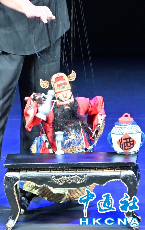 •   9月12日,香港康文署“中華文化節2025”在西灣河文娛中心劇院舉辦“普及中華文化藝術專場”。超過300名中小學師生獲邀免費欣賞由泉州市提線木偶戲傳承保護中心帶來的《古藝新姿木偶戲》演出,感受這項國家級非物質文化遺產的獨特魅力。據介紹,泉州提線木偶戲源於秦漢,傳承至今,保存獨有的劇種音樂“傀儡調”,並發展出一套成熟的操線功夫和獨具特色的偶頭雕刻、木偶造型和製作工藝,2006年被列入首批國家級非物質文化遺產代表性項目名錄,於2012年入選聯合國教科文組織保護非物質文化遺產優秀實踐名冊。圖為《古藝新姿木偶戲》中的小戲《鍾馗醉酒》展現閩南民俗千年技藝。 (香港中通社記者洪少葵攝)香港中通社圖片