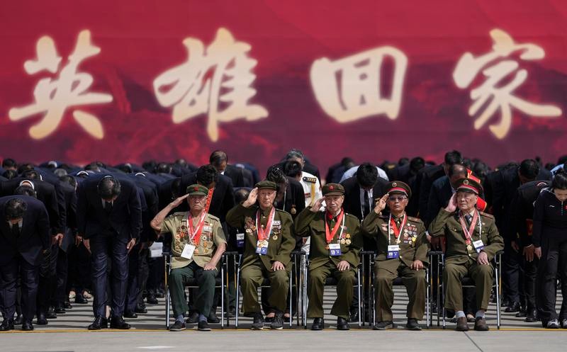 9月12日,第十二批在韓中國人民志願軍烈士遺骸回國。這是志願軍烈士遺骸抵達瀋陽抗美援朝烈士陵園。圖源:新華社 這是繼2014年以來,兩國連續第十二次實施此項人道主義行動。前十一批已迎回981位在韓志願軍烈士遺骸。根據中國退役軍人事務部9月8日發布的消息,此次韓方向中方移交30位志願軍烈士遺骸及相關遺物,延續著兩國基於國際法和人道主義精神建立的特殊合作傳統。(完) 【編輯:彭玉婷】