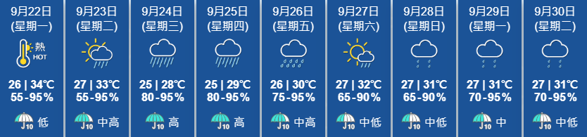 未來九天天氣預報。(圖源:香港天文台) 根據天文台現時預測路徑,樺加沙會在本周三(9月24日)上午在香港以南近距離掠過,是對香港最大威脅的“西登”路徑,屆時中心附近最高持續風速達到每小時210公里,天文台已直接表明“本港星期三吹烈風至暴風”,相信八號風球亦大機會會發出。 賽馬取消六合彩延期 政府呼籲防風勿掉以輕心 香港特區政府周末召開會議緊急部署,政務司司長陳國基主持應對極端天氣督導委員會會議,全面檢視並進一步督導和統籌跨部門作全面和充分的準備及應變部署,以應對樺加沙可能為香港帶來的威脅。政務司副司長卓永興、發展局局長甯漢豪、運輸及物流局副局長廖振新、保安局副局長卓孝業、環境及生態局副局長黃淑嫻,以及相關政策局和部門的代表出席會議。 政府已進行了全方位部署,緊密協作,致力保障市民的生命財產和公共安全,盡力減輕風暴帶來的威脅和影響,同時也做好了善後部署,安排好人手、裝備,在颱風過後盡快讓市面復常。 政府呼籲,星期三離岸及高地可能達颶風,天氣惡劣,有狂風大驟雨及雷暴,海有非常巨浪及湧浪。由於受顯著風暴潮影響,屆時沿岸水位可能與2017年的天鴿及2018年的山竹相若。在惡劣天氣情況下,政府亦提醒身處臨時搭建物,例如天台屋、斜坡附近寮屋的市民,考慮到臨時庇護中心暫避,亦建議停泊在戶外的車輛另選室內位置停泊車輛。政府呼籲市民立即採取防風、防水浸措施,尤其是位於低窪地區的居民和商戶。市民請保持警覺,惡劣天氣情況下遠離河道、斜坡等危險地方,停止所有水上活動。各相關部門會持續發放更新消息,各位市民請繼續密切留意政府發放的最新消息。市民請密切留意天文台的最新天氣消息,並儘快做好一切防風、防水浸準備。(完) 【編輯:錢林霞】