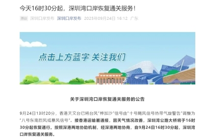 2、香港醫管局季節性流感疫苗注射計劃25日開始,合資格人士可在公立醫院及門診診所接種季節性流感疫苗。 3、超強颱風“樺加沙”遠離香港,香港特區行政長官李家超24日晚在社交平台發文指出,政府不會鬆懈,正努力協調各部門全力應對風災善後工作。 4、香港機管局24日表示,機場會在25日早上6時逐步恢復正常運作,預計全日將處理超過1000班航班。 5、香港天文台24日發文指出,超強颱風“樺加沙”吹襲香港,是繼颱風“韋帕”後再次發出最高級別的十號颶風信號,平了1964年需要於同年兩度發出十號信號的紀錄。 6、有一家4口在柴灣觀浪,其中3人墮海,香港特區政府保安局局長鄧炳強25日在港台節目表示,“是很不幸的事件”,相關行為是否涉及違法,例如是否涉及疏忽照顧兒童等,當局稍後會研究。 7、因天氣情況改善,港珠澳大橋主橋及港珠澳大橋香港連接路,已於25日凌晨零時起,恢復開放予所有車輛行駛。 8、外來人才湧港推升租賃需求,香港住宅租金持續攀升。元朗區9月租賃突破200宗,按月增長15%。 9、一帶一路總商會發起“一帶一路的一百個香港故事網上巡禮”,向“一帶一路高峰論壇”獻禮。香港中華總商會會長蔡冠深25日講述他帶領中總,落實多個與“一帶一路”沿線國家互利共贏的合作項目,為“一帶一路”發展作出新貢獻。 10、24日,港深創新及科技園有限公司邀請市場就河套香港園區第一期第二及第三批次發展選定地塊發展提交意向書。(香港新聞網9月25日綜合) 【編輯:譚暢】