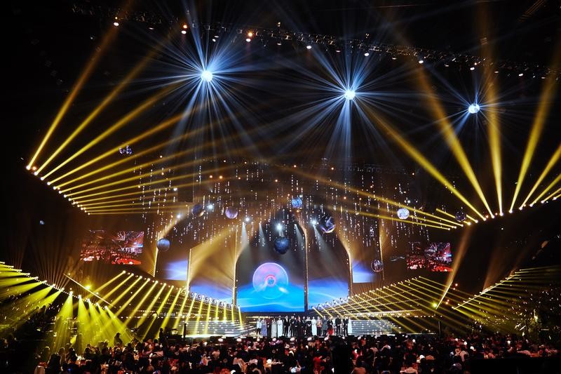 這是9月28日拍攝的晚會現場。圖片來源:新華社