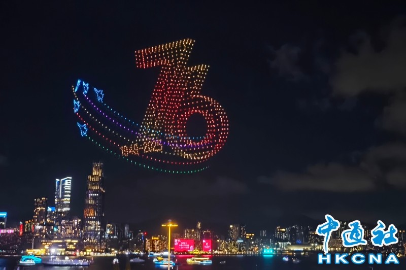 1200架無人機點亮灣仔海濱(香港中通社圖片) 梁振英在晚會致辭指出,未來一年,國家擴大高水平對外開放,香港有無限機遇,亦有巨大的為國家貢獻的空間。 表演開篇“花開香江 潮湧東方”,多個表演團體聯合演出舞蹈《紫荊花盛開》,知名小提琴家姚珏聯合香港弦樂團演出《粵劇幻想曲》,中西結合的樂曲猶如香港的魅力。第二篇章“燈火璀璨 魅力都市”,熟悉的旋律引領觀眾回到經典港片的畫面中;隨後,譚輝智聯同中小學生合唱《香港歡迎你》,亦是在歡迎國慶黃金周來港的旅客。 第三篇章“同心致遠 共此金秋”中,特地安排機器人與廣州大劇院合作演出近年火爆全球的音樂劇《雄獅少年》,四個機器人分別表演跳舞和打鼓, 這項創新結合科技的演出,成為晚會的一大亮點,觀眾掌聲不斷。 晚會的高潮,迎來解放軍駐港部隊文工隊演出舞蹈《礪兵》,鋼鐵洪流進行曲響起,似乎置身北京九三閱兵現場,舞蹈融合搏擊的動作,吸引小朋友目不轉睛連連拍手。 隨後,張明敏聯同青年打撃樂演奏家及吉林市歌舞團合力演出《我的中國心》,觀眾席跟隨唱起“長江長城~黃山黃河~”,再次點燃紅館。被譽為“行走的CD”的香港歌手李克勤,一首《Victory》,響應了全運會主題。 全運會是這場晚會的元素之一,奧運金牌得主江旻憓攜手歌手胡海泉、香港花式跳繩會及吉林市歌舞團等,共同演唱全運會倒計時主題曲《我攜山海等你來》,現場觀眾搶先聽。