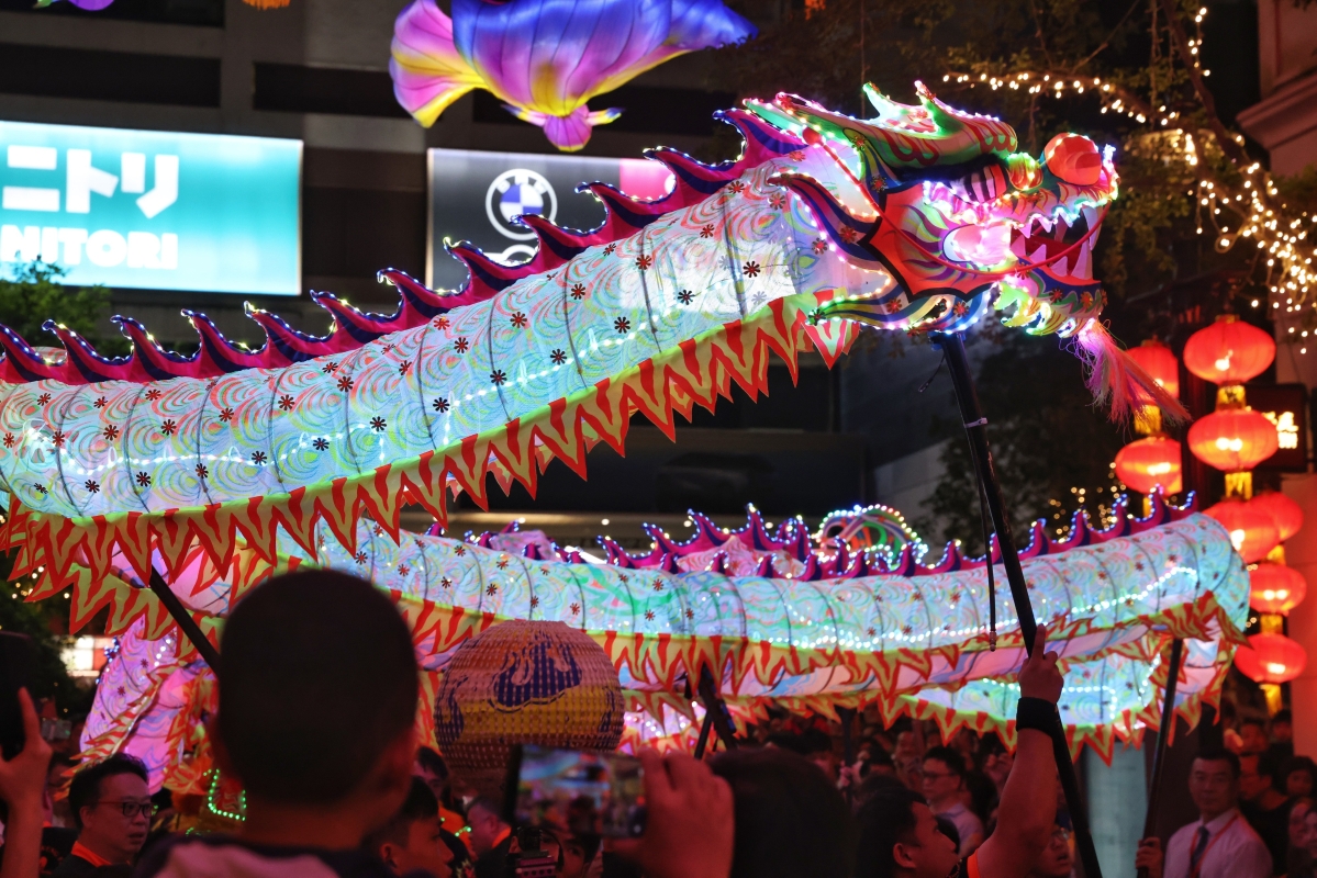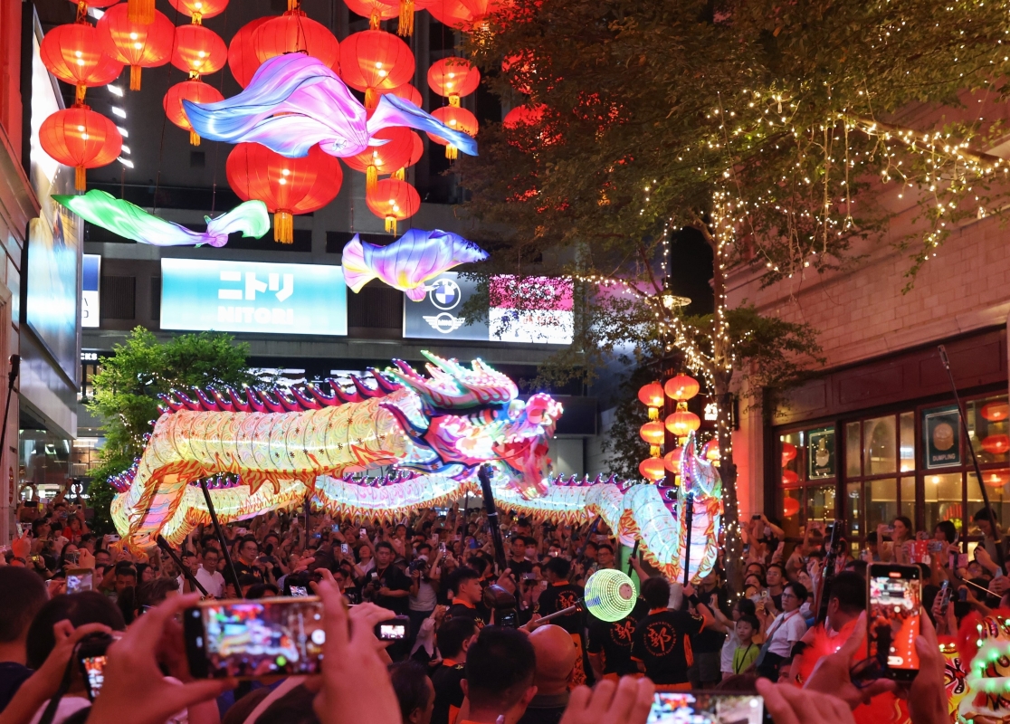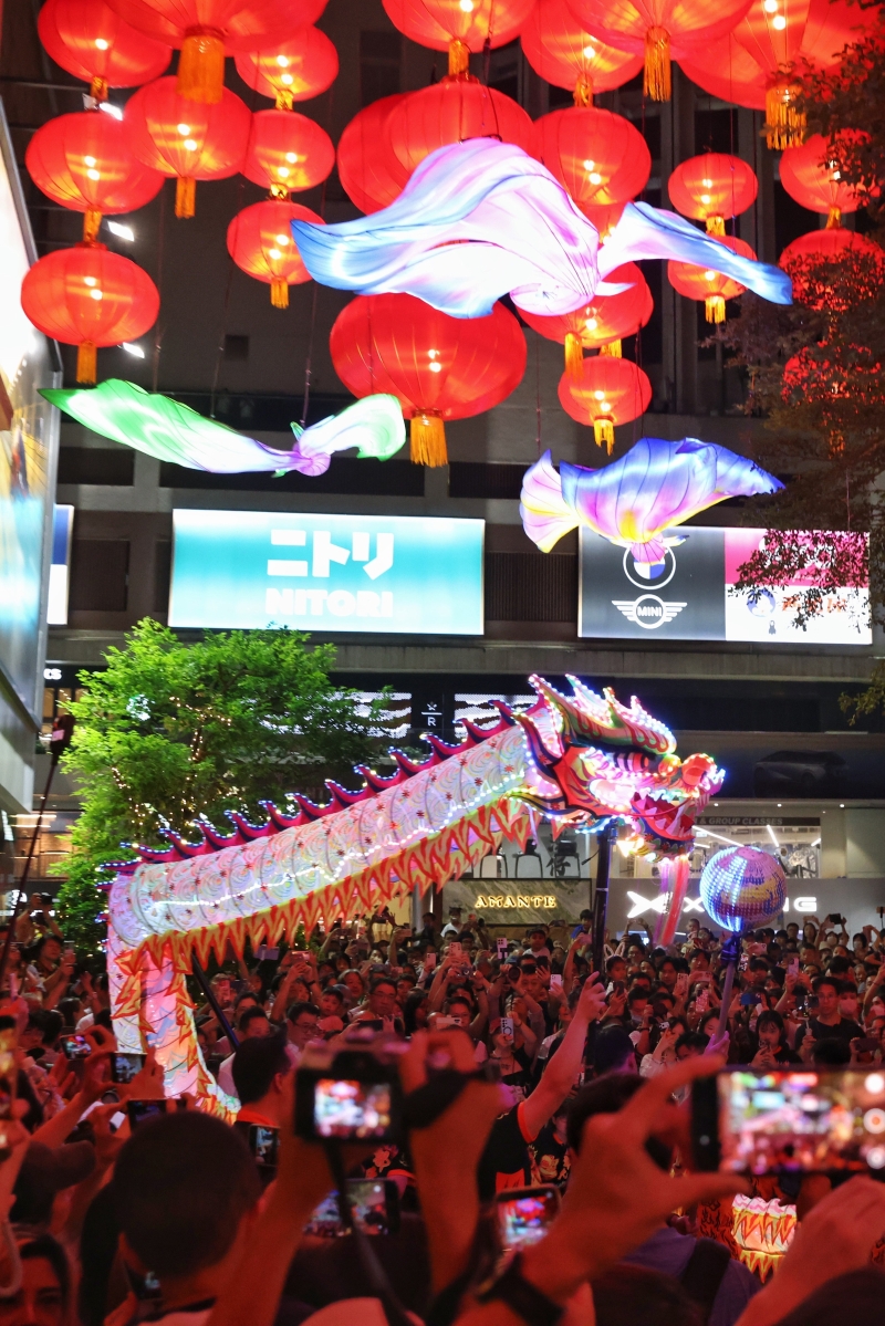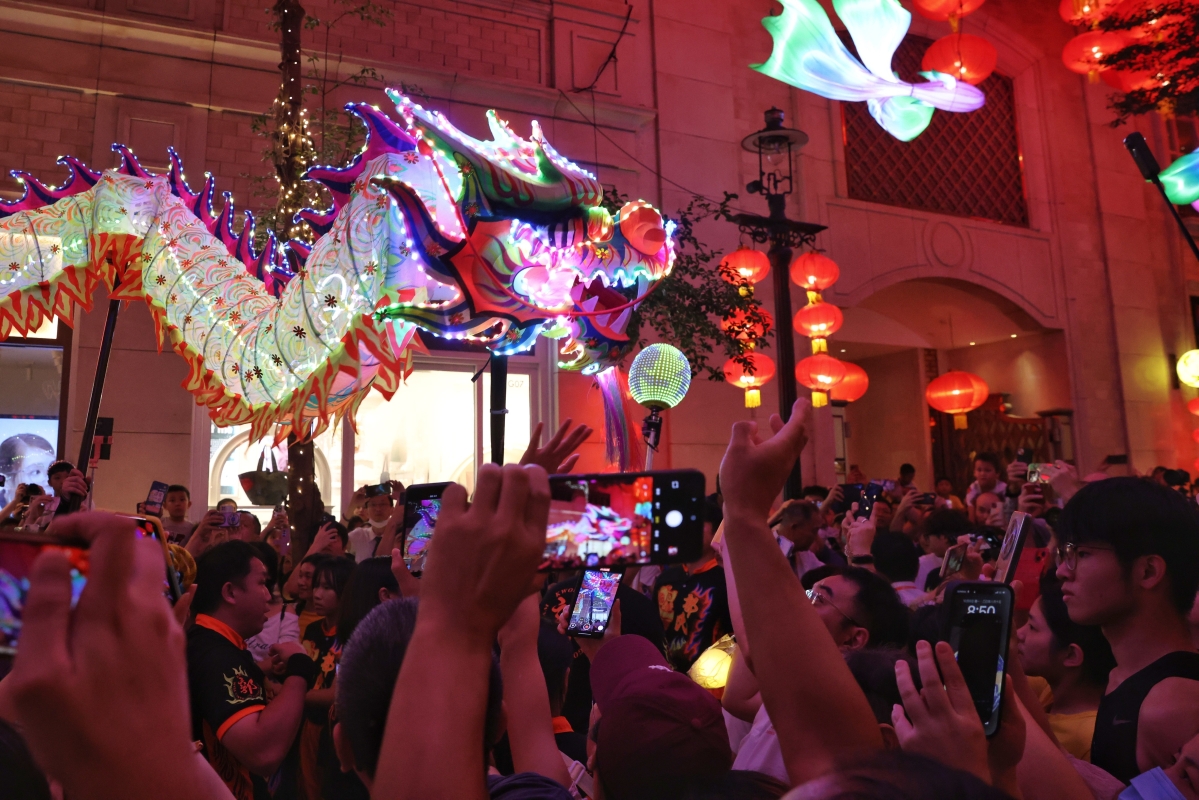 利東街“LED火龍舞鼓賀中秋”現場吸引大批市民和遊客觀賞。