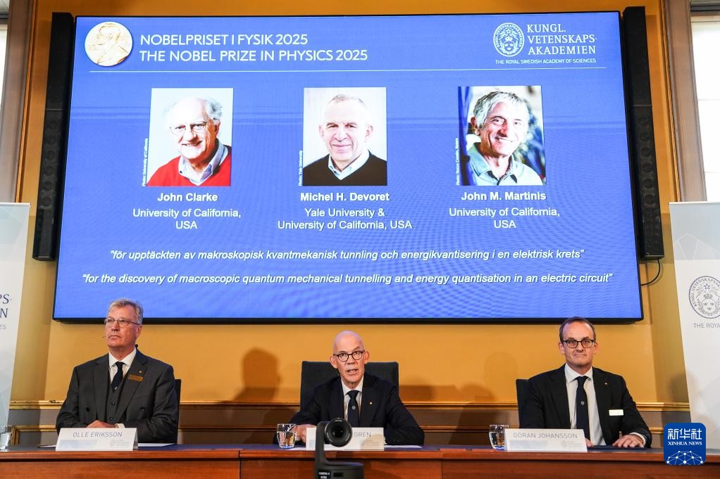 瑞典皇家科學院10月7日宣佈,三名科學家因在量子力學領域的貢獻獲2025年諾貝爾物理學獎。這是10月7日在瑞典斯德哥爾摩拍攝的2025年諾貝爾物理學獎公佈現場。(圖源:新華社) 綜合消息,約翰·克拉克(1942年出生)是英國劍橋大學培養的物理學家,加州大學伯克利分校榮休教授,以研發超導量子干涉儀(SQUID)著稱,該設備廣泛應用於物理、醫學等領域。 米歇爾·H·德沃雷特(1953年出生)是法國巴黎南大學博士,現任耶魯大學教授,在量子電路和單電子泵技術方面有開創性貢獻。 約翰·M·馬蒂尼斯(1958年出生)是加州大學聖巴巴拉分校教授,曾擔任谷歌量子人工智能實驗室硬件首席科學家,主導了53量子比特處理器的研發工作。 量子力學通常描述微觀粒子的行為,如電子能“穿越”勢壘的“隧穿效應”。長期以來,這類現象被認為僅限於極小尺度。然而,三位獲獎者在1984至1985年間於加州大學伯克利分校合作,首次在包含數十億庫珀對(超導體中的電子對)的宏觀電路中觀測到量子隧穿與能量量子化。 該研究催生了“人工原子”概念,為量子技術奠定基礎。馬丁尼斯後續將其應用於量子比特研發,推動超導量子計算機發展。諾貝爾獎委員會主席奧勒·埃里克松指出:“這項工作不僅深化了對量子世界的理解,更開啟了量子計算、傳感與加密的新紀元。”(完) 【編輯:淩玉輝】