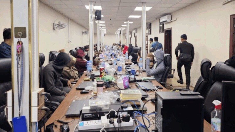 柬埔寨執法人員7月18日突襲上丁省(Stung Treng)一處詐騙中心後。柬埔寨打擊網絡詐騙委員會秘書處圖 今年7月14日,柬埔寨首相洪馬內簽署命令啟動“清剿網絡詐騙”專項行動,柬國家打擊網絡詐騙委員會聯合多部門持續開展高壓打擊,旨在徹底根除網絡犯罪,切實維護公共安全、社會秩序與國家穩定。(完) 【編輯:豐悅】