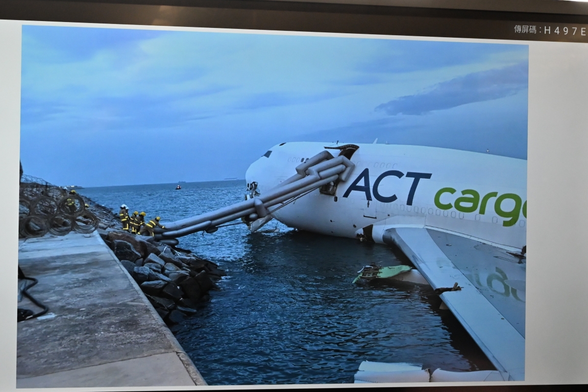 機管局機場運行執行總監姚兆聰表示,貨機在事前沒有發出任何求救,降落北跑道時衝出跑道,撞爛鐵絲網,期間將一輛在圍網以外的保安巡邏車撞落海,機管局實時啟動應變中心。