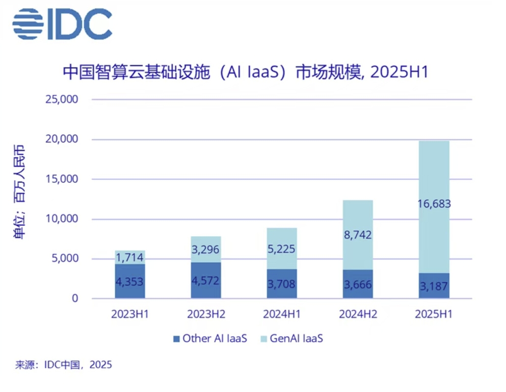特稿:中國智算雲爆發式增長 "AI+政務"推動政府現代化治理轉型香港新聞網10月22日電(記者 馮秋榆) 國際數據公司(IDC)10月21日發佈的《中國智算雲基礎設施市場(2025上半年)跟蹤》顯示,今年上半年,中國智算雲基礎設施整體市場同比增長122.4%,市場規模達到198.7億元人民幣。其中,生成式AI雲基礎設施市場同比增長219.3%,市場規模達166.8億元人民幣——中國AI算力雲基礎設施迎來爆發式增長。 IDC預測,到2029年,該市場規模將接近1500億元人民幣。10月22日,IDC中國分析師陳啟今在接受香港中通社、香港新聞網專訪時著重指出:IDC調研發現, “AI + 政務” 已成為推動中國的政府部門向現代化治理轉型的重要途徑之一,此外,儘管國產芯片仍面臨先進制程受限、軟硬件生態成熟度不足等困難,但近兩年正逐步縮小與國際主流芯片的技術代差,在算力市場的競爭力持續提升。 中國AI算力雲基礎設施爆發式增長 需求端市場全面擁抱AI