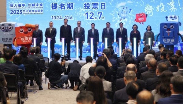 香港立法會選舉啟動禮舉行 李家超籲各界踴躍投票選賢能香港新聞網10月23日電 香港特區政府與選管會於政府總部舉行2025年立法會換屆選舉啟動禮,行政長官李家超與選管會主席陸啟康主禮。李家超致辭指出,香港正邁向由治及興的關鍵階段,新一屆立法會需選出有擔當、熱誠服務市民的賢能議員。他強調,完善選舉制度後,第七屆立法會過去四年通過近130項法案,審批逾260項民生項目,總額近7000億港元,并全票通過《維護國家安全條例》。立法會選舉提名期將於明天(24日)展開,12月7日正式投票,特區政府將全力推動公務員與社會各界積極參選及投票。