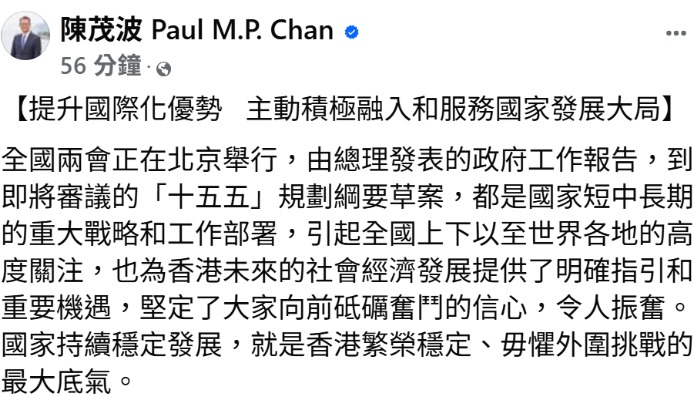 陳國基:“十五五”與香港發展和特區政府施政重點密切關聯分享到: