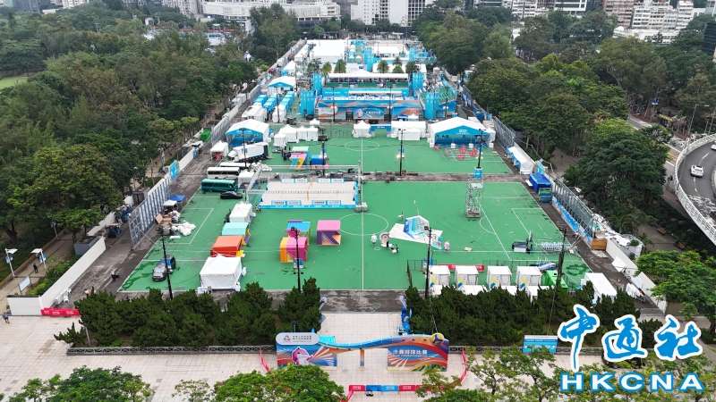 2025年第十五屆全國運動會在香港舉辦的比賽項目涵蓋排球、手球、沙灘排球、鐵人三項、男子22歲以下組籃球、公路自行車等。 主要場館及賽事項目包括:啟德體育園舉辦手球(男子)、保齡球等項目。香港將軍澳單車館進行場地單車相關賽事:主要負責場地單車賽。中環海濱:舉辦鐵人三項賽事。香港體育館承辦男子22歲以下組籃球賽事,維多利亞公園舉辦沙灘排球賽事。而主媒體中心設在中山紀念公園體育館。圖為10月28日維園的沙灘排球比賽場地。(香港中通社陳奕啟 攝) 香港中通社圖片