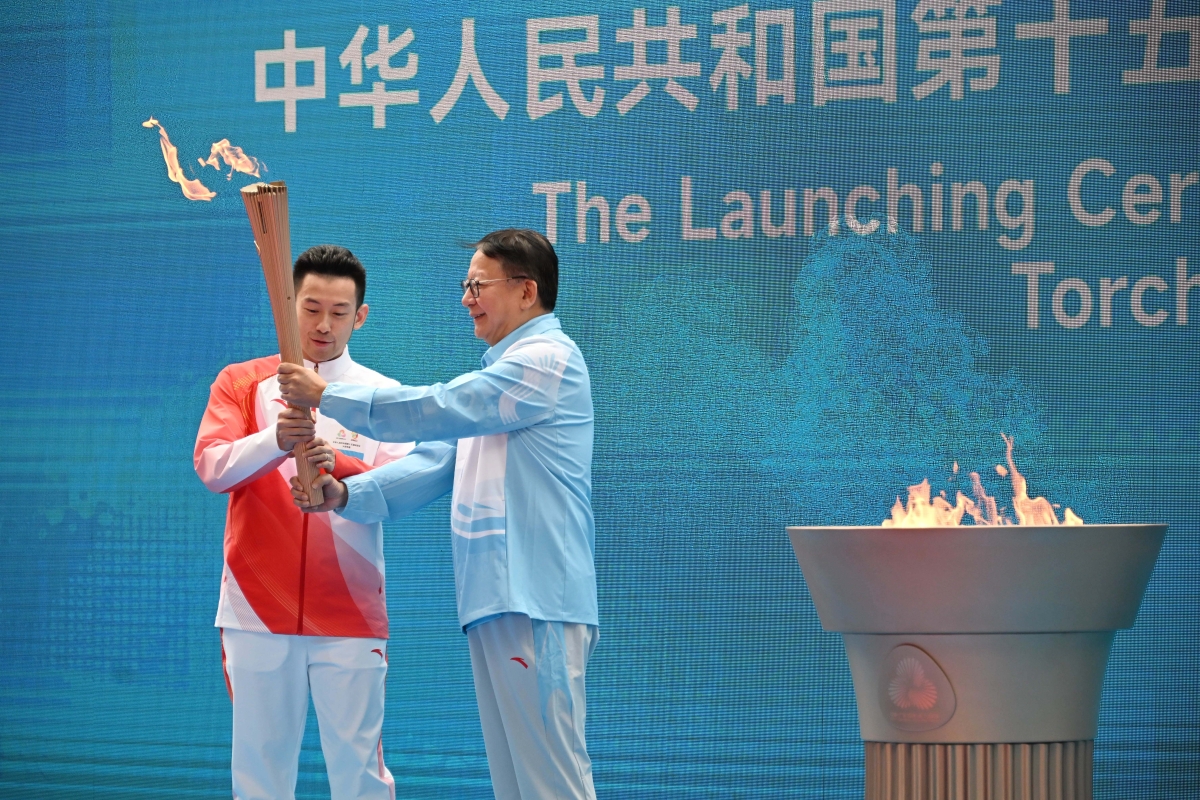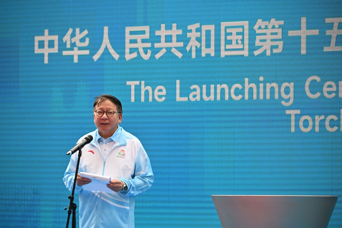 十五運會火炬傳遞香港站起跑儀式在香港特區政府總部舉行。