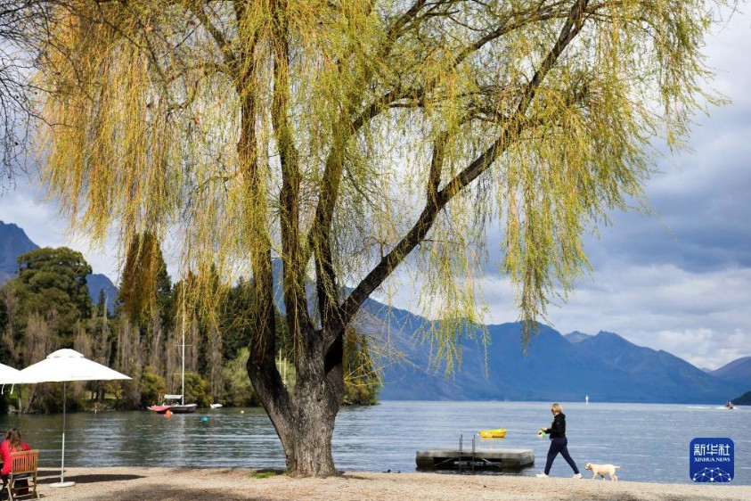 一名女子在新西蘭南島昆斯敦的湖邊散步。 新華社資料圖