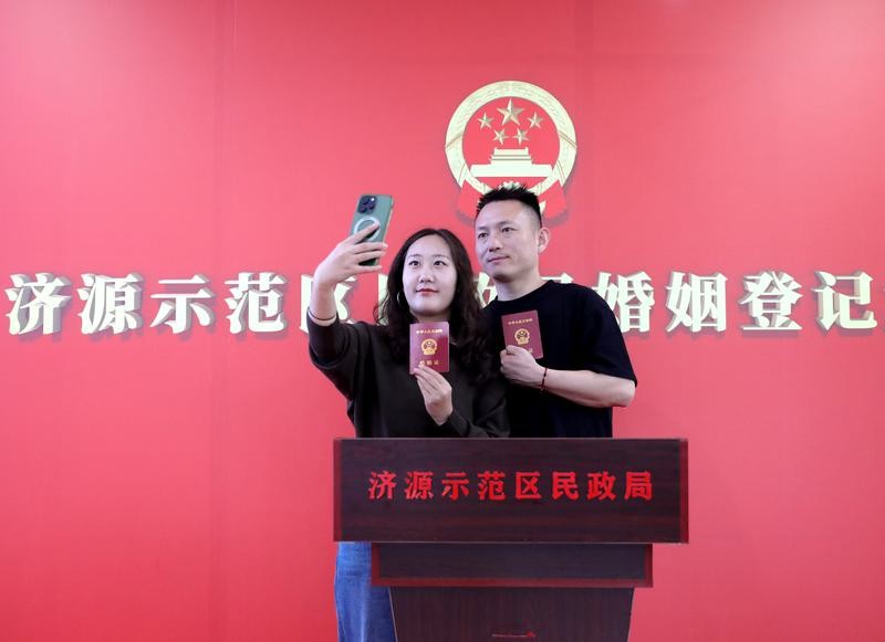 資料圖為河南省濟源市民政局婚姻登記大廳,一對新人領取結婚證後拍照留念。圖片來源:新華社 綜合5日媒體報道,政策層面持續發力是推動結婚登記回暖的關鍵,這一增長被視為婚育支持政策初見成效的重要信號。去年全年結婚登記僅610.6萬對,創近45年新低,而今年有望實現明顯反彈。 自今年5月10日起,新修訂的《婚姻登記條例》正式實施,取消地域限制、無需戶口本、全國通辦等舉措大幅提升了登記便利性,尤其便利了在非戶籍地工作生活的年輕人。 廈門大學丁長發副教授指出,此舉有效降低了時間與經濟成本,提升了民眾幸福感。與此同時,全國已有29個省份延長婚假,其中山西、甘肅提供長達30天的婚假。多地還推出結婚獎勵措施:浙江發放結婚消費券,湖南鼓勵發放“結婚紅包”,山西呂梁對符合條件的新婚夫婦現場發放1500元現金紅包,廣東部分村鎮亦推出禮包獎勵,進一步激發適齡青年結婚意願。 值得注意的是,婚姻登記便利化也催生“婚登+文旅”新業態。今年七夕節(8月29日)作為全國通辦後首個傳統佳節,上海單日登記2310對,創十年新高,其中1130對為異地新人,凸顯政策對流動人口的積極影響。 專家分析指,結婚登記回升不僅關乎家庭幸福,更對宏觀經濟產生深遠影響。作為新生兒出生率的先行指標,結婚數量增長有望緩解人口負增長壓力,並改善房地產市場預期。在人口結構變化與樓市調整交織的背景下,婚育支持政策正逐步釋放積極效應,為社會與經濟注入新活力。(完) 【編輯:彭玉婷】