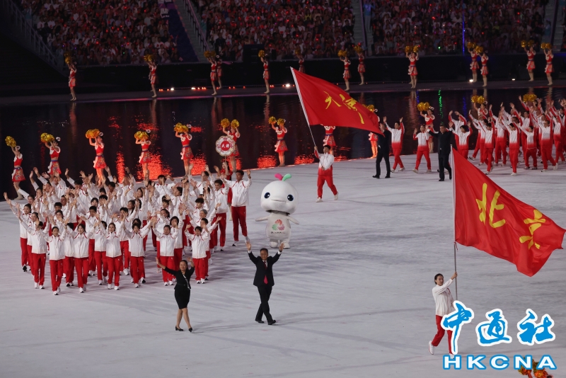 11月9日,中華人民共和國第十五屆運動會開幕式在廣東奧林匹克體育中心舉行。以“圓夢未來”為主題的開幕式包括“同根同源、同心同緣、同夢同圓”三個篇章,展現粵港澳大灣區的壯闊圖景。圖為北京體育代表團入場。(香港中通社記者 謝光磊 攝) 香港中通社圖片