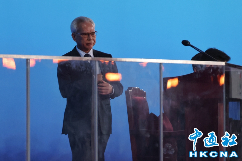 11月9日,中華人民共和國第十五屆運動會開幕式在廣東奧林匹克體育中心舉行。以“圓夢未來”為主題的開幕式包括“同根同源、同心同緣、同夢同圓”三個篇章,展現粵港澳大灣區的壯闊圖景。圖為第十五屆全運會組委會執行主任、香港特區行政長官李家超致辭。(香港中通社記者 謝光磊 攝) 香港中通社圖片