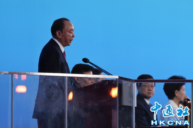 11月9日,中華人民共和國第十五屆運動會開幕式在廣東奧林匹克體育中心舉行。以“圓夢未來”為主題的開幕式包括“同根同源、同心同緣、同夢同圓”三個篇章,展現粵港澳大灣區的壯闊圖景。圖為第十五屆全運會組委會執行主任、澳門特區行政長官岑浩輝致辭。(香港中通社記者 謝光磊 攝) 香港中通社圖片