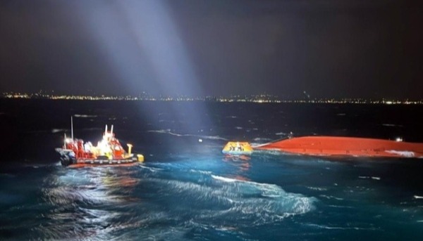 11月10日,韓國海警在事發海域附近搜救失蹤人員。新華社發(韓國群山海洋警察署供圖) 韓聯社當日報道,事發後,中國海警向韓國海警通報情況,韓方獲悉後立即向事發海域派遣4艘巡邏艦和直升機開展搜救工作。