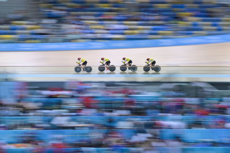 11月13日,雲南隊在女子團體追逐賽資格賽中。圖片來源:新華社 女子團體追逐賽資格賽共有13支隊伍參賽,河南隊以4:15.659的成績打破了此前由江蘇隊保持的4:15.713的全國紀錄,新紀錄就此誕生。 在男子團體追逐賽資格賽中,亦有13支隊伍參賽,河南隊再次以3:53.367的成績刷新了該隊此前保持的3:53.629的全國紀錄。 在女子團體競速賽奪金的河南隊鮑珊菊賽後接受採訪時表示,來香港這幾天沒上起跑器適應,所以進入節奏有點慢,她這一圈騎得不是特別好,但是隊友郭裕芳和駱書艷的第二、三棒都排名第一,她們把她落下的成績追回來了,非常厲害。 香港隊在當天進行的男、女子團體競速賽和追逐賽均在資格賽止步。 團體競速賽每隊由三名車手組成,進行三個圈比賽,每名車手領騎一個圈後,從賽場外側離開,每隊第三名車手獨自完成最後一圈。而團體追逐賽,每隊由4名車手組成,賽程為4公里,期間4名運動員可交換位置領騎,成績會按每隊第三名運動員前輪抵達終點的時間計算。(完) 【編輯:林曉惠】