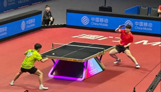 11月16日,十五運會乒乓球男子單子項目在澳門銀河綜藝館上演決賽。上海隊選手樊振東擊退海南隊選手林詩棟,成功衛冕。(香港中通社圖片) 當天下午舉行的全運會乒乓球男單決賽,被譽為“地表最強乒乓球賽”,競爭程度不亞於國際賽事。比賽開始林詩棟以8:4打出氣勢,之後卻連續落網,樊振東趁勢逆轉以11:9取得首局勝利。 次局林詩棟多次主動進攻以11:8追平大比分,第三局樊振東6:1拉開比分並以11:5拿下,第四局樊振東越戰越勇,一度以10:1領先,在失誤下以11:3再下一城。第五局樊振東志在必勝,連續得分,每得一分大喊一次,最終以11:4結束比賽。 這是樊振東第四次打入全運會男子單打決賽並成功衛冕。他隨後向場內觀眾敬禮致意,綜藝館內爆發震耳的尖叫聲吶喊聲。 樊振東受訪時表示,林詩棟的進攻、變化帶來很大挑戰,但自己渴望勝利的決心沒有動搖,很開心在首局落後情況下最終拿下勝利。 銅牌爭奪戰同樣激烈,王楚欽在先勝兩局下,被遼寧隊的袁勵岑以11:4大比分拿下一局。王楚欽隨後調整狀態,最終以大比分4:1贏得季軍。 當天下午舉行的兩場男子單打比賽,館內幾乎滿座,粉絲手持應援毛巾為選手吶喊,還有不少粵語加油聲。賽場外也設置了多處打卡點,吸引全國各地的球迷拍照。(完) 【編輯:李冉】