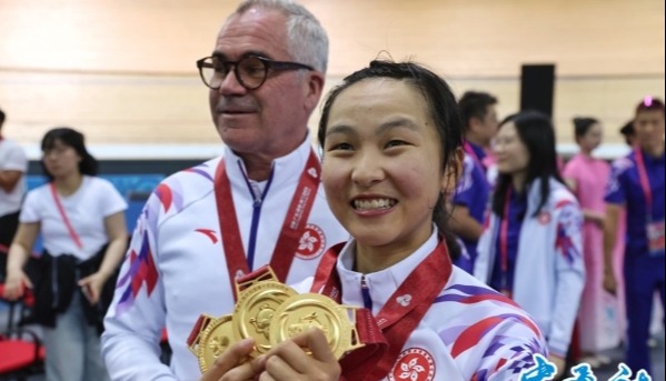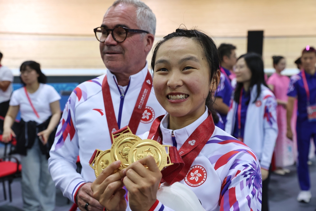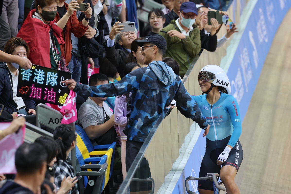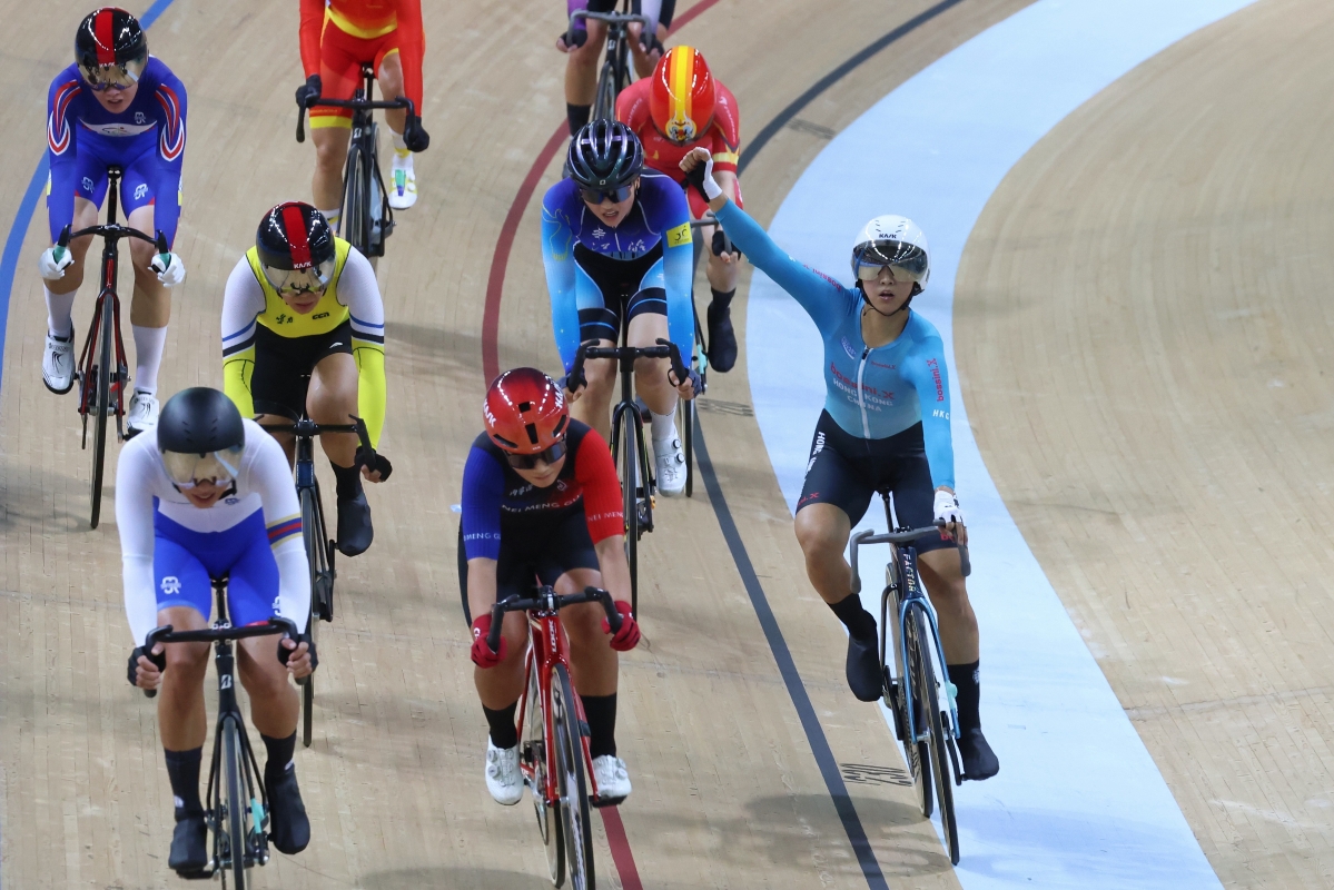 香港新聞網11月17日電(記者 謝光磊 )11月17日,第十五屆全國運動會場地自行車項目女子全能賽在香港單車館舉行,港隊代表李思穎以124分奪冠,取得個人今屆全運會第三面金牌。當天,港隊代表李思穎在女子全能賽經過前三項比賽後排名第一,最後在記分賽守住總分領先,以124分取得個人今屆全運會第三面金牌,亦是港隊在今屆全運會競賽項目第8金。全能賽包括四個項目,李思穎在捕捉賽得首名,衝刺賽及淘汰賽分別得第三名,在記分賽開始前累積112分,總績排第一。壓軸的記分賽,全程20公里,車手競逐80圈,每10圈衝分一次,前四名車手得分,記分賽所得積分直接加入總分。李思穎於其中四個衝刺圈共取得15分,守住總分領先到最後。