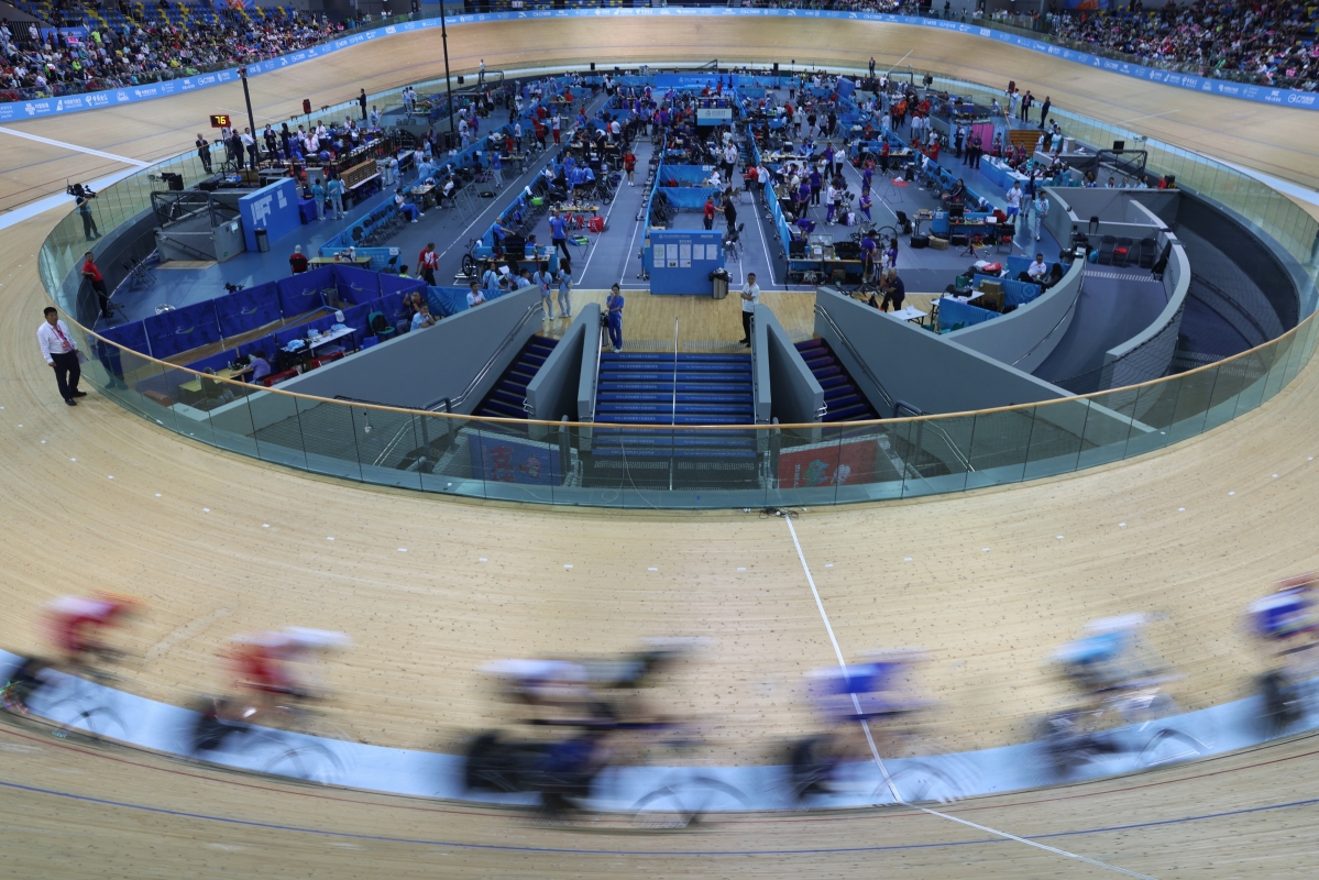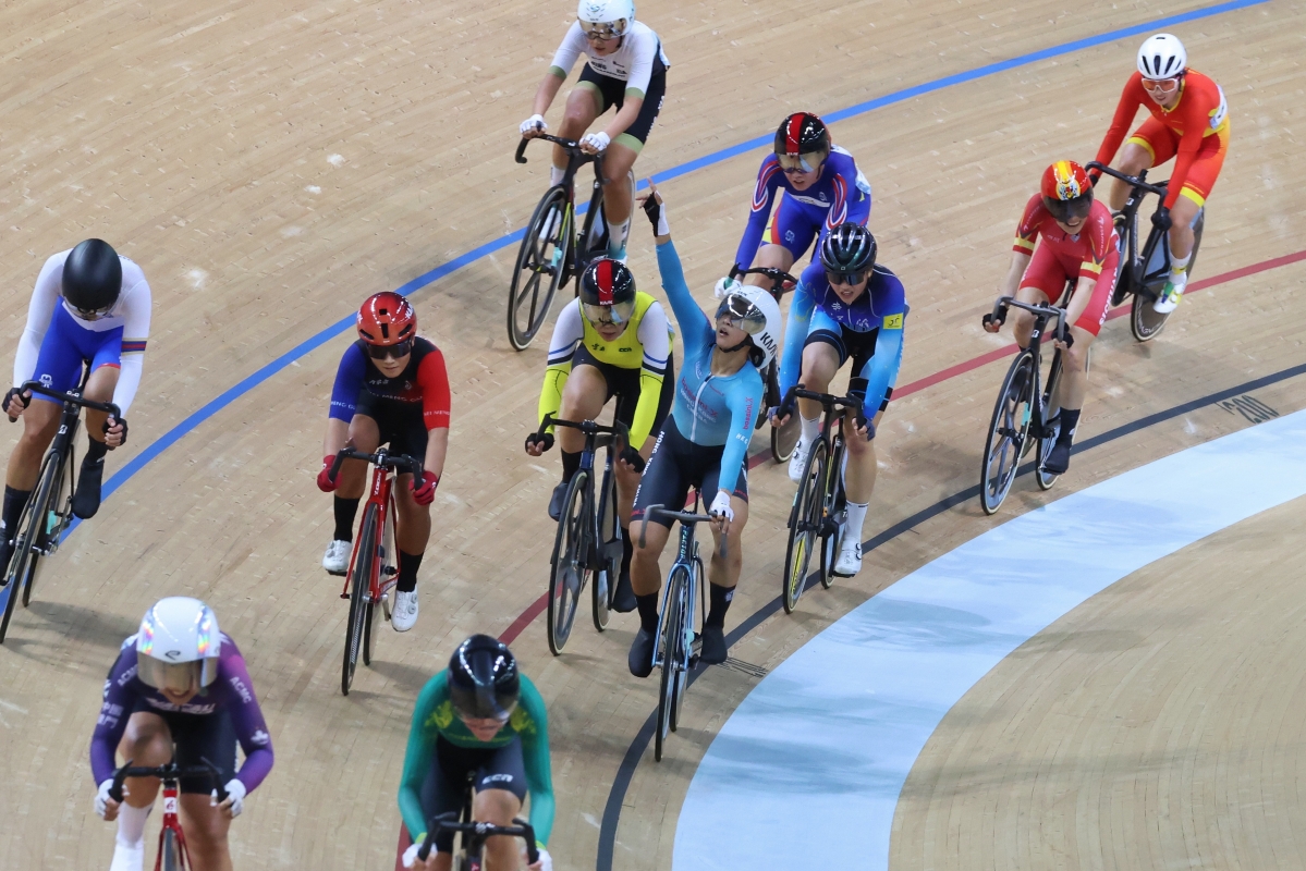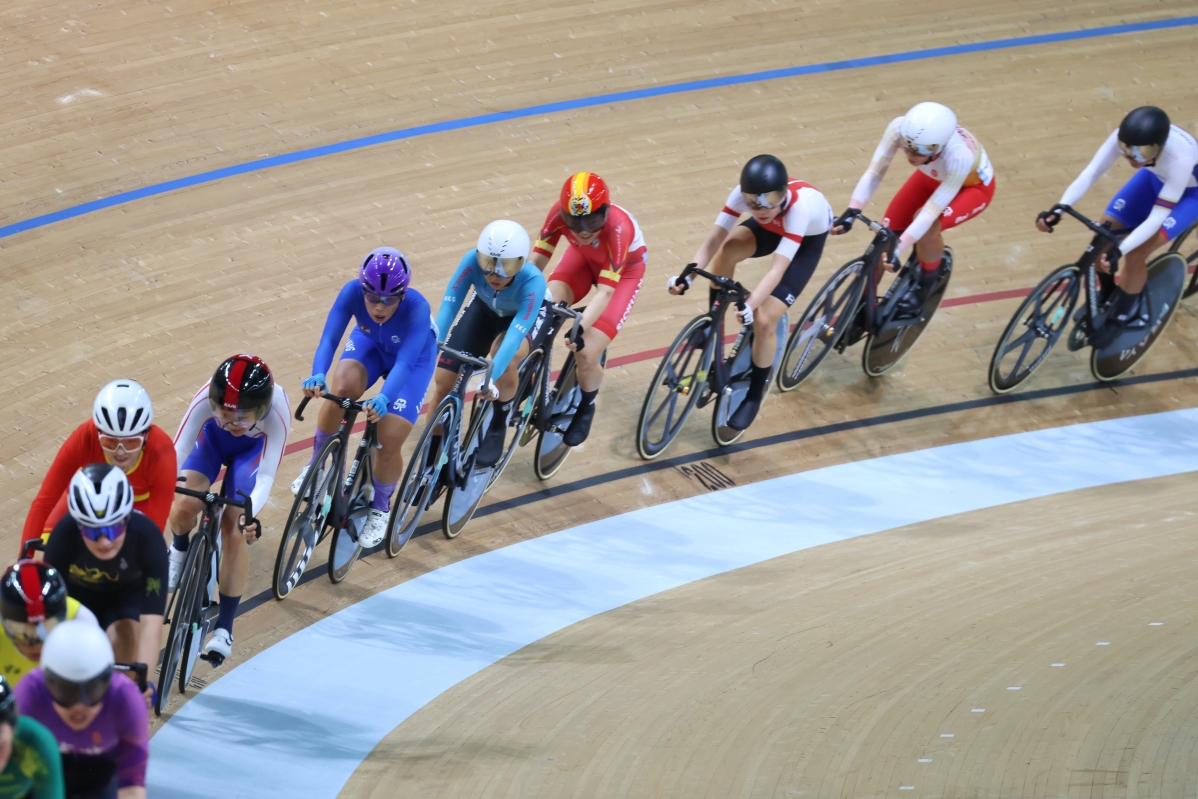 第十五屆全國運動會場地自行車項目女子全能賽在香港單車館舉行