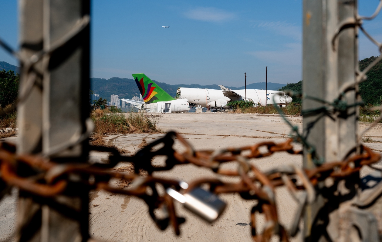 香港新聞網11月18日電(陳奕啟圖文)11月17日,香港中通社記者拍攝到最近在香港國際機場北跑道貨機事故的飛機殘骸。失事飛機已被成功打撈,集中安置大嶼山倒扣灣海徬,周邊以鐵絲網圍封。其機身與幾尾斷裂處金屬切口呈現不規則的撕裂狀,機尾緊隨其後側臥在地面,鮮綠底色配上紅紫色花瓣狀塗裝,在一片廢墟中格外突出。靠近飛機中段位置塌陷變形,部分機體骨架裸露。機頭遭受嚴重破壞,原本圓滑的機鼻已消失,內部的線路、管道與支撐結構清晰可見。另一側的地面散落著多件引擎部件,部分風扇葉片脫落,起落架輪胎被移到一旁,輪圈覆滿泥塵。