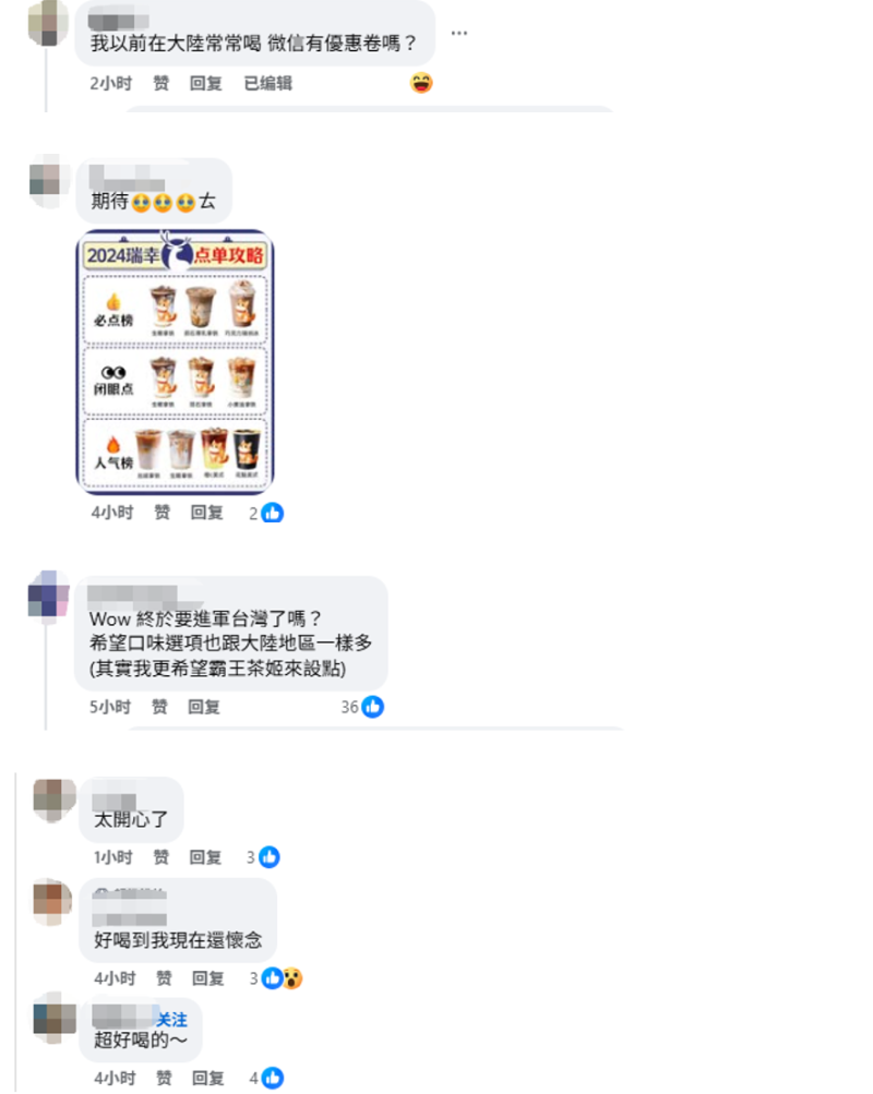 網友評論 不少網友對瑞幸進軍台灣市場十分看好,認為它會被“喝爆”、在島內掀起風潮。也有網友貼出瑞幸點單攻略,期待台灣門店能完整引進大陸地區的菜單。