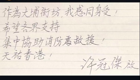 中通社圖片 另據本地媒體報道,至27日上午,火場附近有大批居民守候,凝望火場,有家住被火大廈之一的宏仁閣30樓的女住戶今早(27日)10時在外圍看到家住的大廈仍有單位在焚燒,一度激動嚎哭。亦有宏昌閣居民苦候失蹤家人消息,稱昨晚起與太太失聯,盼望可盡快尋回,“活也好死也好,先把她救出來,不想她留在裡面。” 40歲的鍾先生居於宏昌閣23樓,昨午接獲太太通知因火警受困隨即趕回家,並向現場消防求救多次,惜仍未成功救援。他稱,大廈起火速度快,“沒想過一燒燒到這麼厲害……10分鐘走廊全冒煙、逃不出來”,太太須留在家中待救。兩人昨午保持聯絡,但直至昨晚7時左右失聯,太太至今仍未獲救。鍾生亦憶述,裝修工程期間常聞到有煙味,懷疑有工人在棚架上吸煙。他又指,每戶都有在窗戶安裝發泡膠板,曾就此查詢,獲回覆稱是為了保護玻璃窗。 亦有居民見仍有單位火勢未止,一度激動嚎哭。該女住戶家有3人,昨午見到鄰近大廈起火,本來不知道要撤離,幸好及後有警察上門拍門叫走,她知當時大廈有響警鐘,離開單位不久後火勢便蔓延至宏仁樓。“你看,我們大廈仍有著火!”女住戶望著自己的單位附近的單位仍著火,心裡很焦急,希望自身單位不受波及。她昨晚在教友家暫住,今早回來在大廈附近守候。她指一直祈禱,希望火勢盡快撲滅。“熄了火後不知怎打算,也不知道會否變危樓,只希望救熄後,可以搬回家住!”