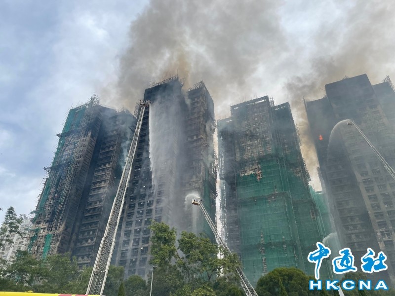 香港中通社圖片 另一位成功撤離的林婆婆向記者憶述,火警發生時“黑煙突然湧進家裡”,只能躲到衛生間報警求助,隨後消防破門進屋,成功獲救。 這場火警最開始由香港消防處在26日下午2時51分接報,至傍晚陸續傳出死傷,大火升級為次於最高“災難級”的五級火。 現場看到,該小區有7座受大火波及,兩座已被熏黑,竹棚部分倒塌,其他幾座露出竹棚和白色外牆;未受波及的一座仍圍著綠色網布。 大火發生後,全港消防車集結,火勢因烈風蔓延,消防力量集中在破門救援,出動26隊搜救隊、304架次消防及救援車輛、1250多名消防人員。 消防處副處長黃嘉榮坦承救火的三大難題:大樓外牆面積大、有竹棚及帆布包裹致火勢迅速、棚架有倒塌威脅;有大量傷者求助個案需要分批處理;火場溫度極高,一層層破門有難度。 仔細觀察被燒後的樓宇,很多窗戶被白色發泡膠封起來,這成為火勢突發的討論點之一,也有受訪居民稱事發當天沒有聽到警鐘響。消防處回應會調查此事,警方已經拘捕涉誤殺的大廈維修工程公司負責人。 消防隊一直沒有放棄救援。黃嘉榮說,341宗求助個案中已成功處理279宗,包括27日早上救出1名男長者,其餘個案會不斷致電聯絡,聯絡到馬上派搜救小隊,目標是盡最大力量救援。