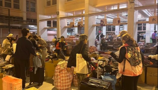 香港中通社11月28日電(香港中通社記者 徐嘉儀)28日,香港大埔宏福苑發生五級大火的第三天,入夜後氣溫低至18度。寒風中,大埔社區中心燈火通明,義工手持喇叭呼喊“有沒有大碼女裝”,在物資堆中翻找外套。 香港中通社記者在現場所見,社區中心內分區堆滿禦寒衣物、食品、床品,甚至貼心地準備了童裝、寵物用品和便利長者吞嚥的軟食。一名女性長者緊握義工遞來的毛衣連聲道謝,角落裡有媽媽為小孩尋找上學穿的白皮鞋。 宏福苑居民遭大火吞噬家園後,政府設置臨時庇護所,提供過渡房屋、青年宿舍、酒店等作為暫時安排,香港企業紛紛捐款捐物,也有餐飲機構提供免費餐食。儘管連日來社會愛心物資湧現,但居民更期盼的,早日有長遠的安居與生活重整。 距離宏福苑不遠處是當區最大的商場,有居民帶著床墊、被子在這裡過夜,認為衛生間、照明一應俱全,也有物資。商場內的酒樓搬出椅子讓居民搭建臨時床架,也為大家準備熱水。