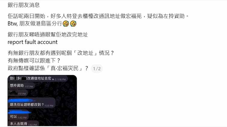 網傳有人修改銀行地址為宏福苑疑騙火災資助 銀行加倍留意分享到: