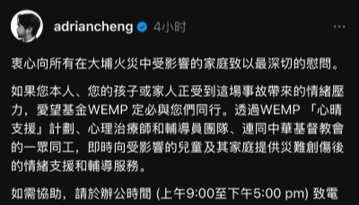 專家談大埔火災後的心理救援:接納情緒適度社交分享到: