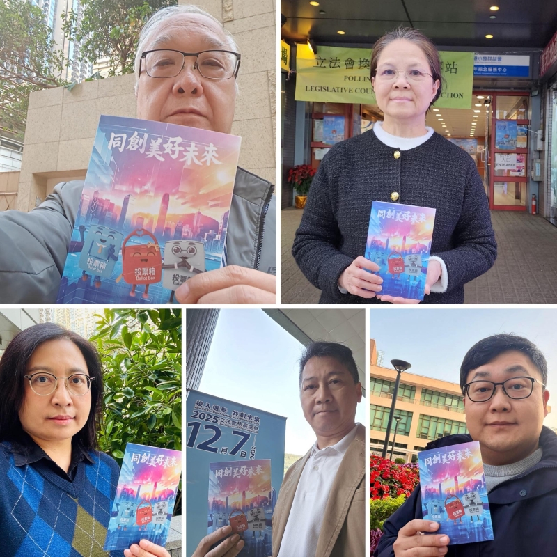 圖源:環境及生態局fb 環境及生態局局長謝展寰與常任秘書長楊碧筠等,在早上投票後,呼籲選民踴躍投票,選出新一屆立法會,與政府共同推動改革和災後重建等事宜。