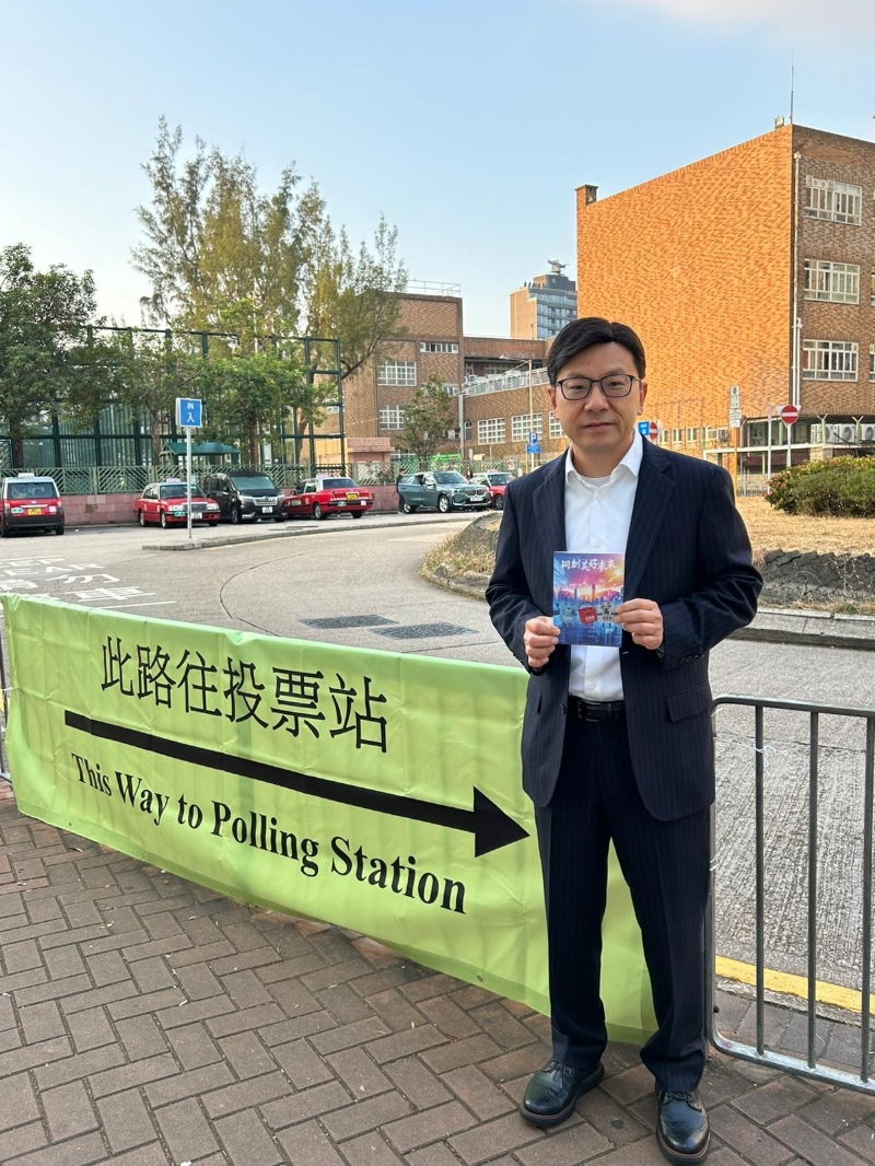 圖源:商務及經濟發展局fb 商務及經濟發展局局長丘應樺前往所屬票站投票,並呼籲市民,包括公務員踴躍投票,選出有能力、有抱負的立法會議員。