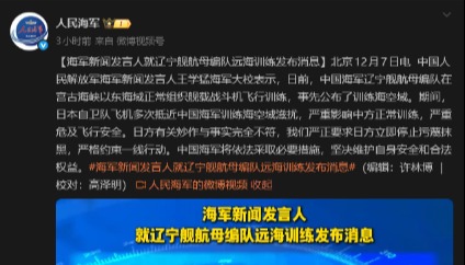 香港新聞網12月10日電 日本指控解放軍軍機雷達照射自衛隊戰機風波持續,日方否認曾接獲演訓通報,但央視旗下媒體“玉淵譚天”9日晚公布據稱中日軍艦人員對話錄音,又稱雙方戰機最近距離不到50公里。 日本防衛省周二公布054A型導彈護衛艦、益陽艦和舟山艦,周一分別通過鹿兒島對出的大隅海峽以及沖繩島和宮古島之間的海域,駛向太平洋。 另一方面,日本放送協會披露更多中日軍機上周六在沖繩附近對峙的詳情,指兩次雷達照射兩機相距約52公里和148公里。而防衛大臣小泉進次郎周二公開否認解放軍曾通報遼寧艦航母編隊訓練事宜。 在北京,外交部回應日媒提問“雷達照射”問題時,外交部發言人郭嘉昆說:“我倒是建議記者朋友去問一問日方,日本自衛隊戰鬥機為甚麼要出現在相關區域,製造這場本不應該發生的危險事件?是不是在刻意滋擾中方正常演訓活動,製造緊張事態?”