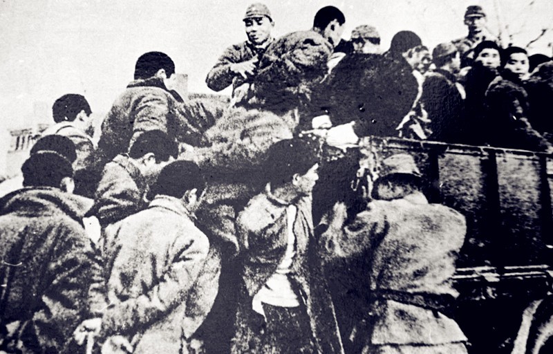 日軍將大批南京青壯年捆綁後,押往郊外集體屠殺。新華社發 面對亡國滅種的罪惡屠刀,中華兒女爆發出抗日的怒吼,在中國共產黨號召和引領下,全體中華兒女萬眾一心、共禦外侮,義無反顧投身到抗擊日本侵略者的洪流之中。